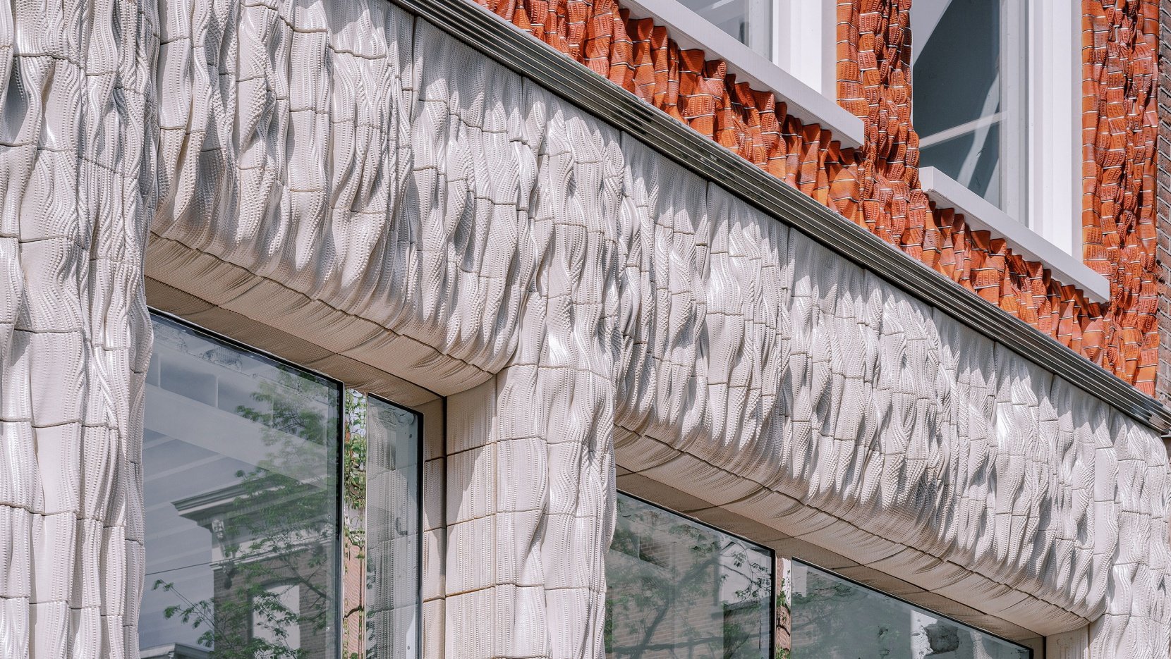 In line with its commitment to pushing the boundaries of architectural design, Studio RAP has developed a unique digital fabrication process over several years. This includes the creation of advanced robotic systems which they combined with in-house developed digital design algorithms to create the façade’s intricate array of 3D printed ceramic tiles. The choice of material was inspired by the celebrated ceramic collection of the Rijksmuseum, the national museum of the Netherlands, while the tiles' textural qualities and complex morphology take cues from the creases, inter-looping yarns, and stitch patterns of knitted textiles.