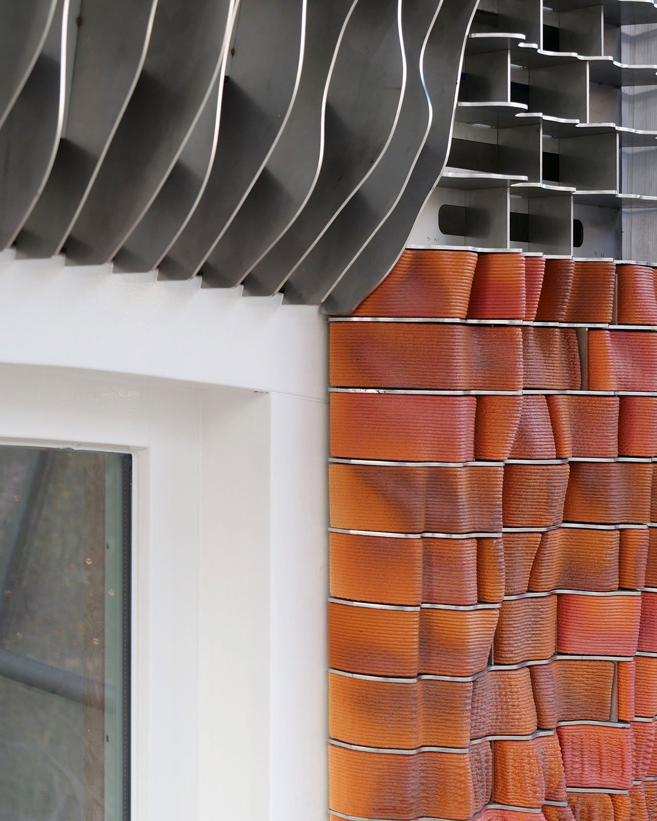 여기에는 자체 개발한 디지털 디자인 알고리즘과 결합하여 파사드의 복잡한 3D 프린팅 세라믹 타일 배열을 만드는 첨단 로봇 시스템 제작이 포함됩니다. 재료 선택은 네덜란드 국립박물관인 국립미술관의 유명한 도자기 컬렉션에서 영감을 얻었으며, 타일의 질감과 복잡한 형태는 니트 직물의 주름, 실과 실 사이, 스티치 패턴에서 힌트를 얻었습니다. 재료 선택은 국립 국립 박물관의 유명한 도자기 컬렉션에서 영감을 얻었으며, 국립 박물관의 도시 패브릭은 원래 파사드의 실루엣, 특히 특징적인 삼각형 구성을 보존하고 세라믹 타일의 크기와 색상을 주변 건물과 동기화하기 위해 노력했습니다. 길가에는 펄 화이트에 은은한 노란색이 가미된 대형 타일이 거리의 전형적인 상점을 연상시키며, 위층은 세 가지 색조의 빨간색으로 덮여 있습니다. 크기가 더 작은 붉은 색 타일은 전통적인 벽돌의 크기와 일치하며, 레이저 커팅된 스테인리스 스틸 카세트는 전통적인 그라우팅을 모방하여 배치되었습니다.translate by Deeple