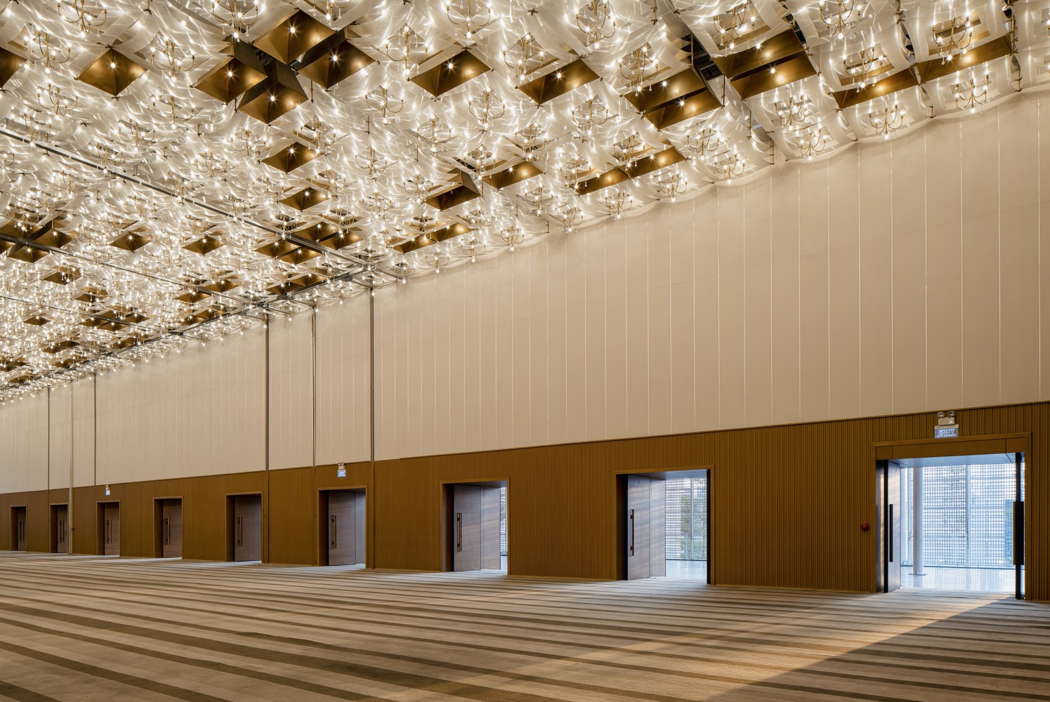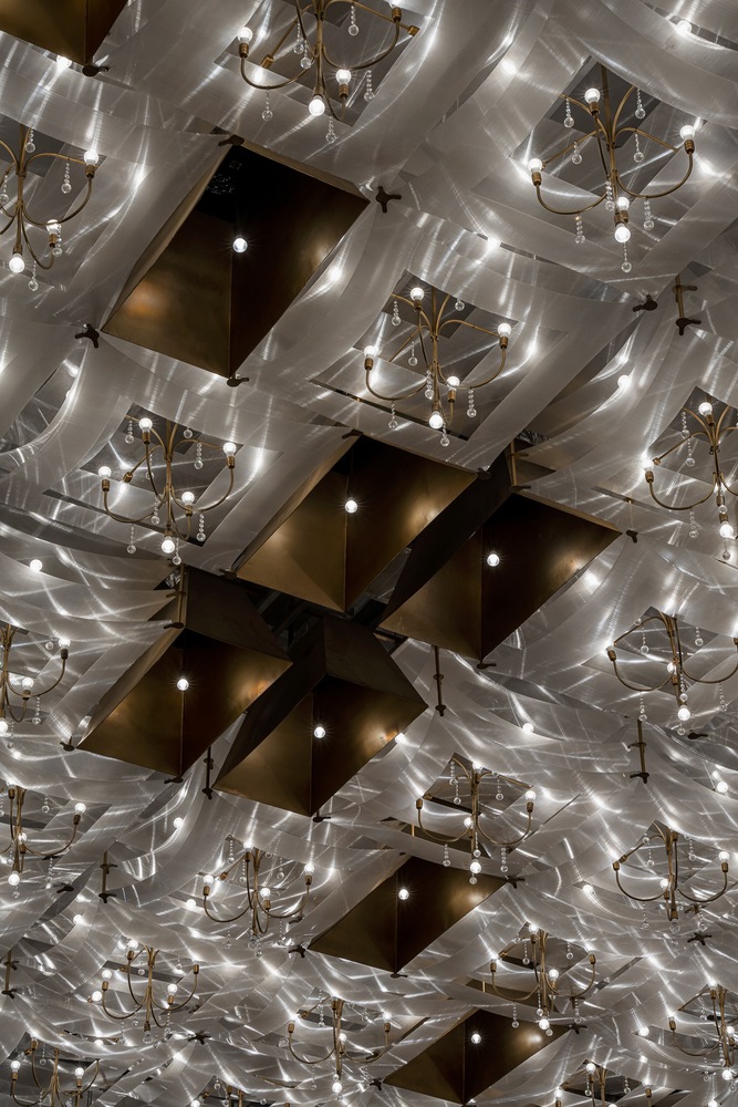 The main driving force behind this concept comes from the fact that the investor's operator made most of the decisions on their own and that the structural frame had been completed prior to our arrival. me+ Architects and ThoA are invited with an 11-month budget as decorators, giving the building a splendid cover, which is just a stage of an industrialized chain, but architects proposed a design rather than an interior covering. Back then, the project consisted of a built framework with an event room and reception hall ratio that was three times larger in closed areas than in open spaces. Therefore, there is no room for architects to improve the spatial experience; instead, the task at hand was to improve the buffer space that is already present and provide possibilities for people to interact prior to taking part in the main event at the White Palace ballroom while still ensuring not to affect the requirements raised by the investor.