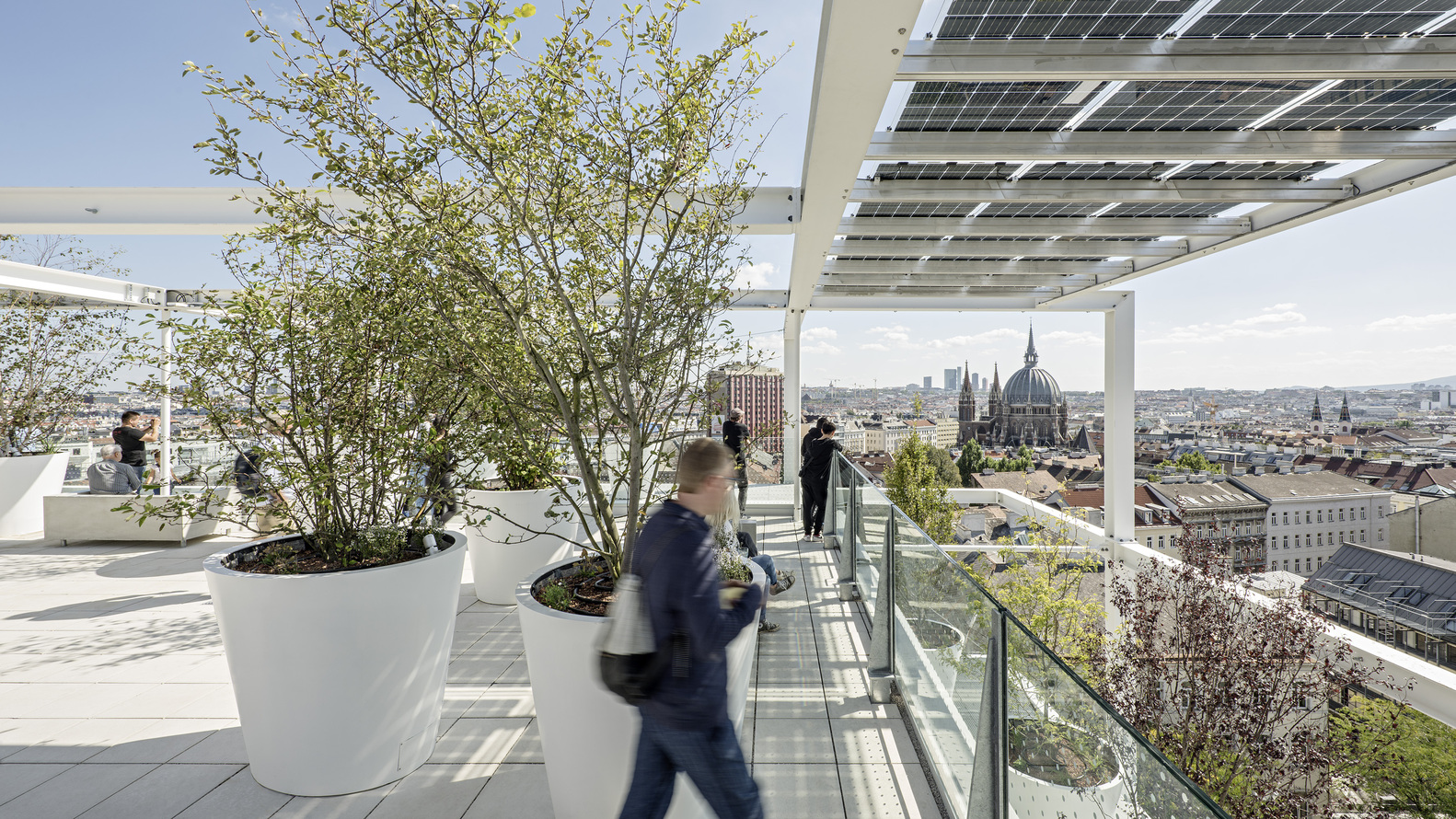 From a three phase architecture competition involving several workshops querkraft emerged as the winner. At the briefing stage already, the client formulated the aim: “We want to be a good neighbor”. querkraft’s approach to achieving this goal is reflected by a building that represents an added value, also for its surroundings. The roof terrace is accessible to the public that offers somewhere to drink coffee, relax, and enjoy the view of the city, and a large amount of greenery on all the facades – these are all aspects that contribute to being “a good neighbor”.