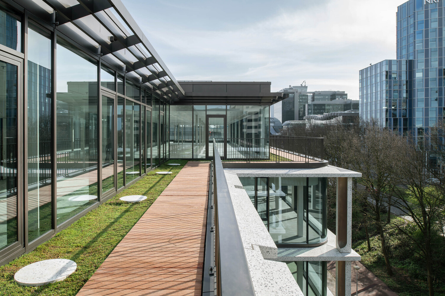 기존 건물은 대지 위에 독립적으로 서 있지만, 주이다스의 고층 건물과 북쪽의 저층 주거용 건물 사이의 선형 구역에 있는 큰 건물 군의 일부입니다. 각 건물마다 개성이 있지만 모든 건물을 둘러싸고 서로를 연결하는 녹색 띠라는 중요한 가치를 공유하고 있습니다. 더 큰 규모에서 이 띠는 두 도시 환경 사이에 녹색 완충지대를 형성하기도 합니다. 재개발을 통해 건물 주변의 여유 공간은 정원으로 설계되어 공원 속 별장이라는 PI59의 독특한 위치를 더욱 돋보이게 합니다.translate by Deeple