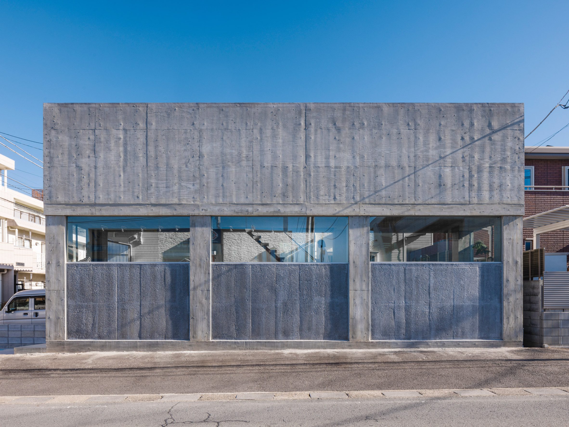 Walls of exposed concrete define this skinny house in Saitama, Japan, which local studio IGArchitects designed with a width of just 2.7 metres.
