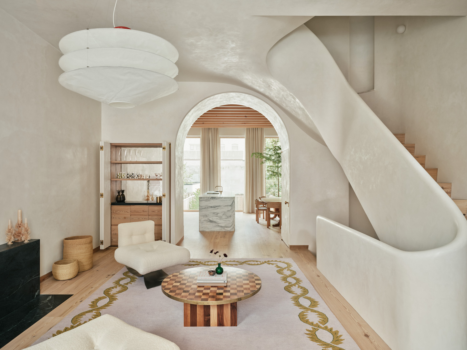 Williamsburg Townhouse is a minimalist townhouse located in Brooklyn, New York, designed by Brent Buck Architects. The structure, brought to life by builder Andrew Zalewski, is nestled in a diverse neighborhood where traditional rowhouses meet contemporary condominiums. A significant aspect of this development is the careful preservation and stabilization of the townhouse’s historic front facade. This attention to heritage is complemented by modern additions, distinguished by their copper and lime washed brick exteriors, contrasting with the original red brick. The design ingeniously integrates six expansive windows at the back of the property, ensuring the parlor and garden levels bask in abundant natural light. A notable interior feature is the sculptural staircase, serving not just as a functional element but also as an artistic statement, connecting the home’s levels up to a rooftop that offers unobstructed views of the New York City skyline.