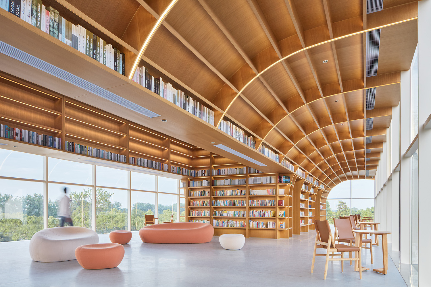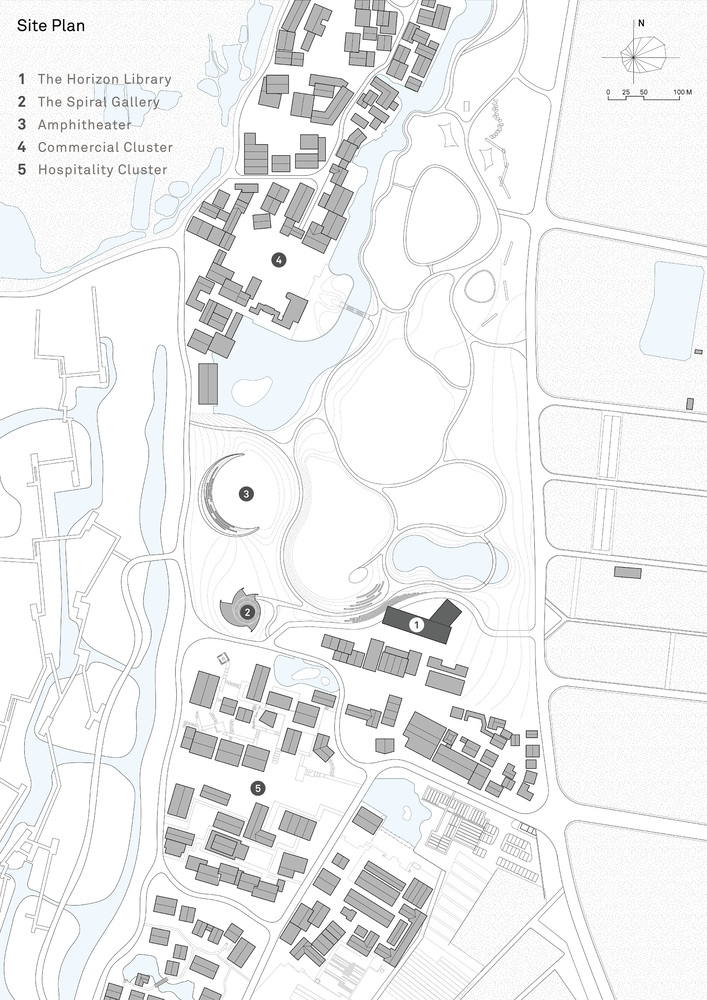 안후이성 허페이의 번화한 대도시에서 떨어진 곳에 자리한 호라이즌 도서관은 다웨이 마을의 초원 속에서 자연과 스토리텔링, 상상력에서 위안을 찾는 독자들을 위한 목가적인 휴식처입니다. 이 건축물은 형태와 재료, 분위기를 통해 개방성의 개념을 구현하여 바쁜 도시 생활에서 벗어나 진정한 휴식을 취할 수 있는 공간을 만들어냅니다. 풍경 위에 떠 있는 사색적인 거실을 콘셉트로 한 이 도서관은 거대한 나무 책장 아래에서 방문객들이 모여 시간과 공간에 대한 인식을 확장하고 대초원의 무한한 지평을 향해 상상력을 펼칠 수 있도록 독려합니다. 다웨이 리바이탈라이제이션 마스터플랜의 첫 번째 단계는 인접한 두 마을을 새롭게 단장하는 데 중점을 두었다면, 두 번째 단계는 그 사이의 대초원을 자연, 예술, 공연이 어우러진 문화 중심지로 탈바꿈시키는 것을 목표로 합니다. translate by DeepL