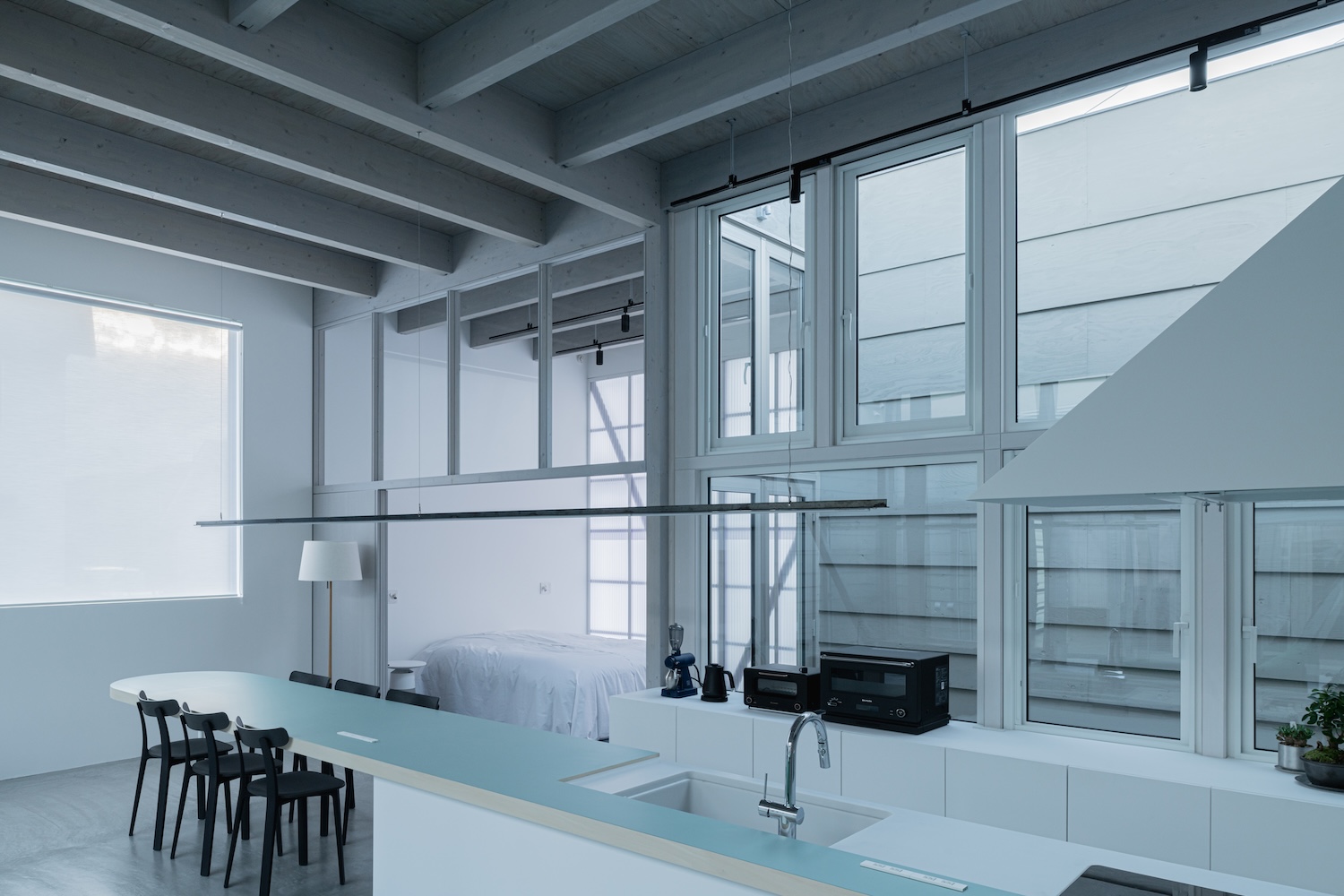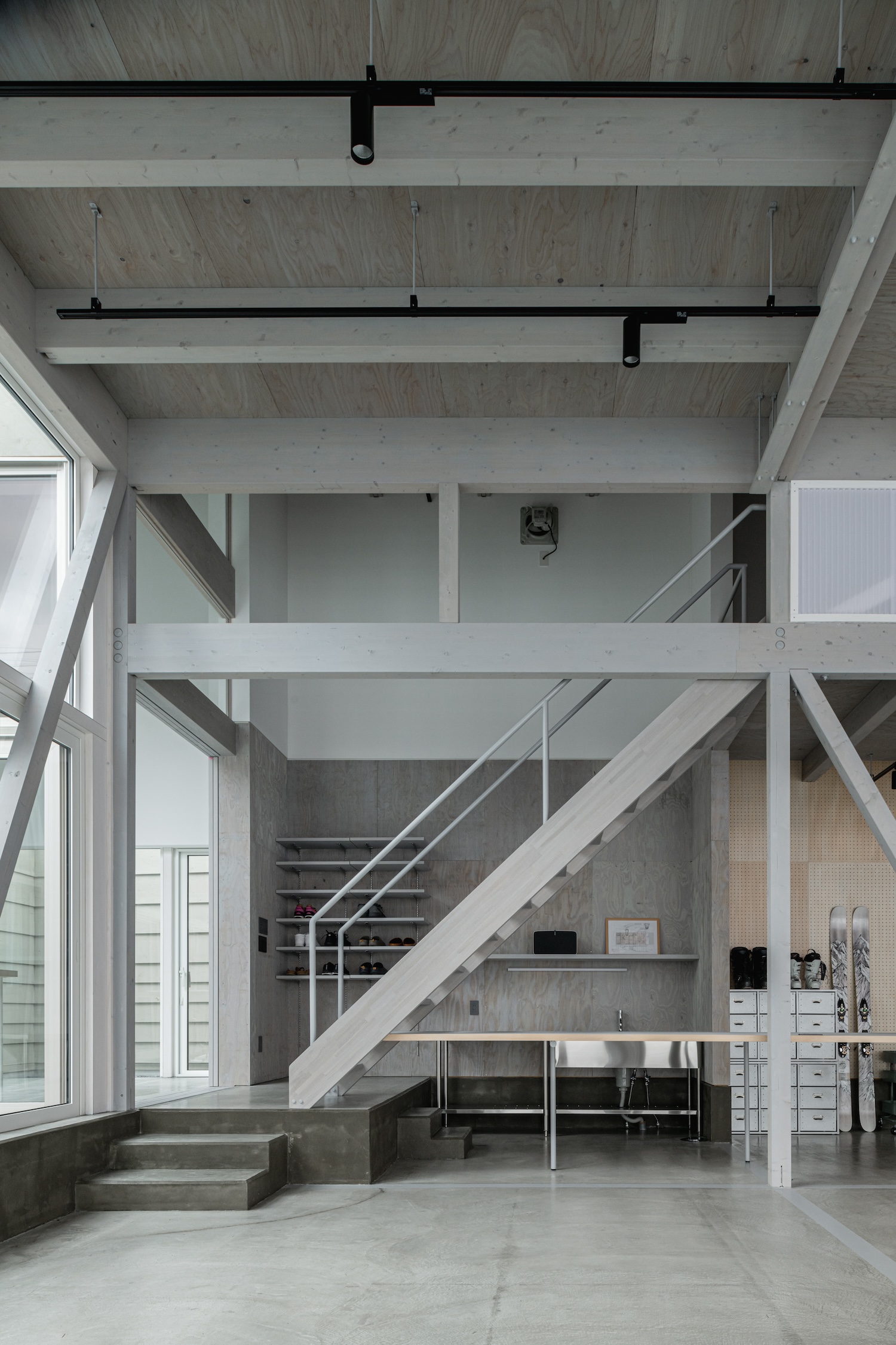 홋카이도의 집은 준 이가라시 건축가가 설계한 일본 홋카이도에 위치한 미니멀리즘 주택입니다. 이 디자인은 상업 공간과 주거 공간이 섞여 역동적인 거리 생활을 만들어내는 전통적인 "상점가" 개념을 재조명합니다. 이 건축적 접근 방식은 건축가가 어린 시절을 생생하게 기억하는 일상적인 물건과 도구로 가득 찬 임시 창고의 정겨운 장면을 반영합니다. 이러한 구조물은 제설 장비 보관, 해산물 건조, 장난감과 라디오 보관 등 다양한 용도로 사용되었으며, 생활 공간과 유틸리티 공간 사이의 유동적인 경계를 보여줍니다. 건축가가 방풍실과 같은 공간을 설명할 때 사용하는 용어인 '가자미도리'라는 개념이 이 프로젝트에서 중심적인 역할을 합니다. 이 공간은 거리에서 보면 완충 공간이지만 내부에서 보면 일본의 전통 엔가와(베란다)와 유사한 중간 지대 역할을 하여 생활이 편안하게 흘러나올 수 있도록 합니다. 이 디자인 철학은 특히 변화하는 라이프스타일에 대한 주거 공간의 적응성을 강조합니다. 물리적 경계는 넉넉하고 모호해야 한다는 개념에서 영감을 얻은 이 프로젝트는 시간이 지남에 따라 기능이 변화할 수 있는 통합적이고 유연한 공간을 만드는 것을 목표로 합니다. 건축가는 다양한 문학적, 철학적 출처에서 영감을 얻어 전체 부지를 다양한 관점과 상호 작용이 어우러져 일관된 생활 환경을 형성하는 '일반적인 주변'으로 상상합니다. 이 주택은 혼슈에서 이주한 부부가 원격 근무와 야외 활동의 균형을 맞추는 동시에 현대적인 디지털 편의성을 수용하는 삶을 추구하기 위해 맞춤 설계되었습니다. 이 디자인은 전통적인 건폐율을 뛰어넘어 약 250평방미터의 넓은 다기능 공간을 만들어 거주자의 변화하는 요구와 의식에 맞춰 동적으로 조정할 수 있습니다.translate by Deeple