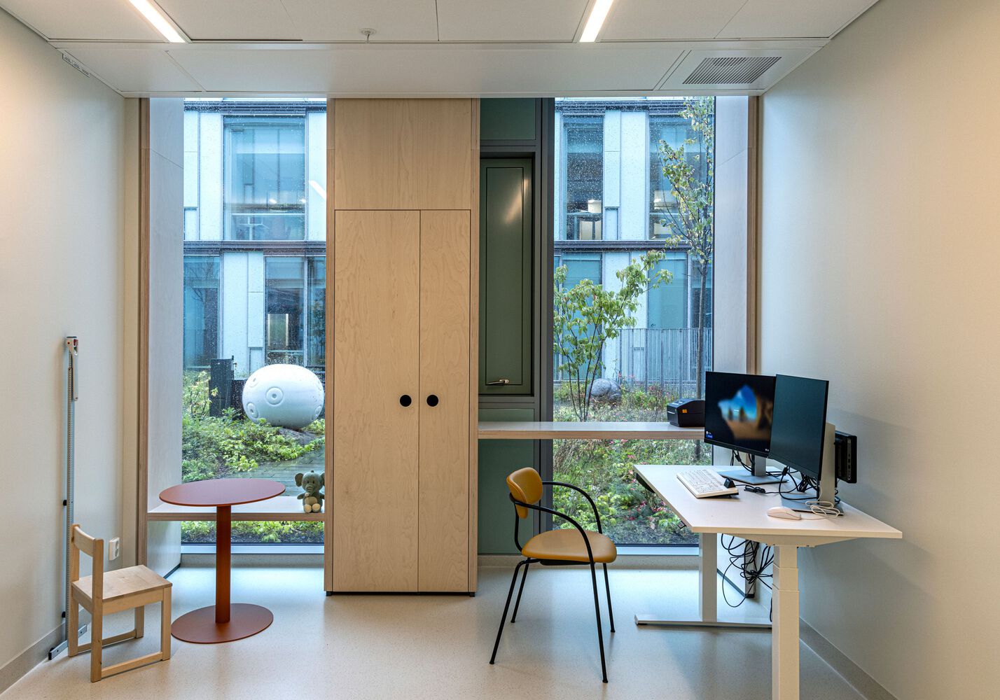 A paramount objective in Glasblokkene is to let children be children, even when they are patients. The hospital prioritizes spaces for physical activity and relaxation, promoting an atmosphere where the emphasis is not solely on medical functions but also well being. The main entrance features a play area, fostering a positive energy with active children visible through the windows when arriving at the hospital.