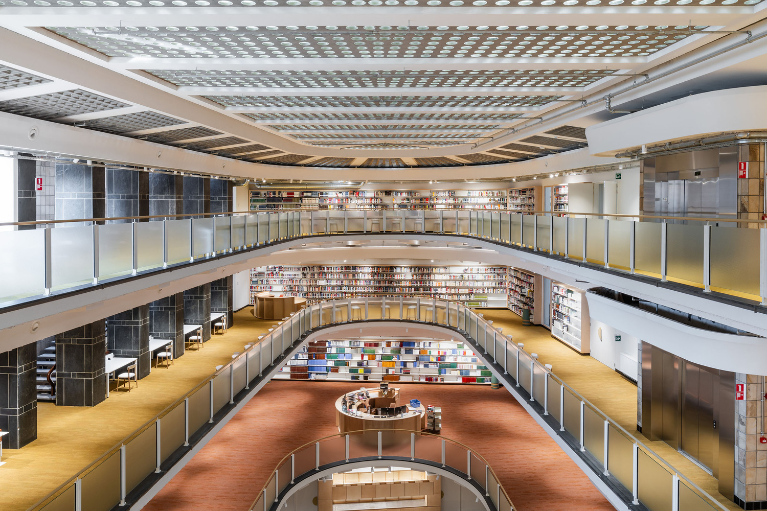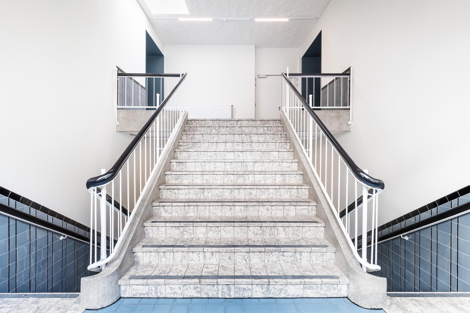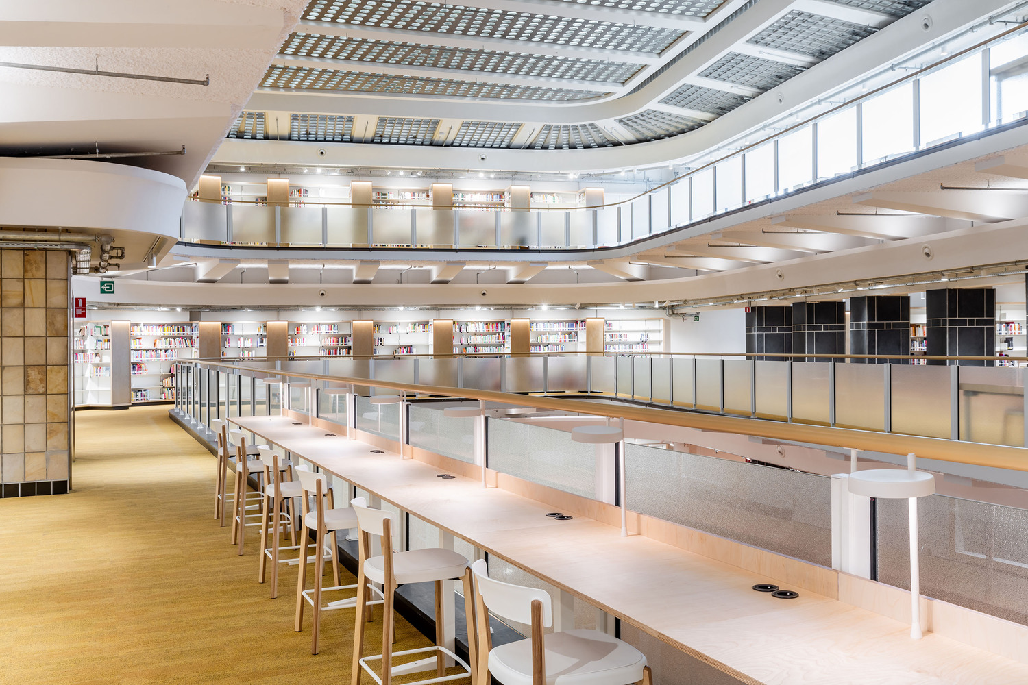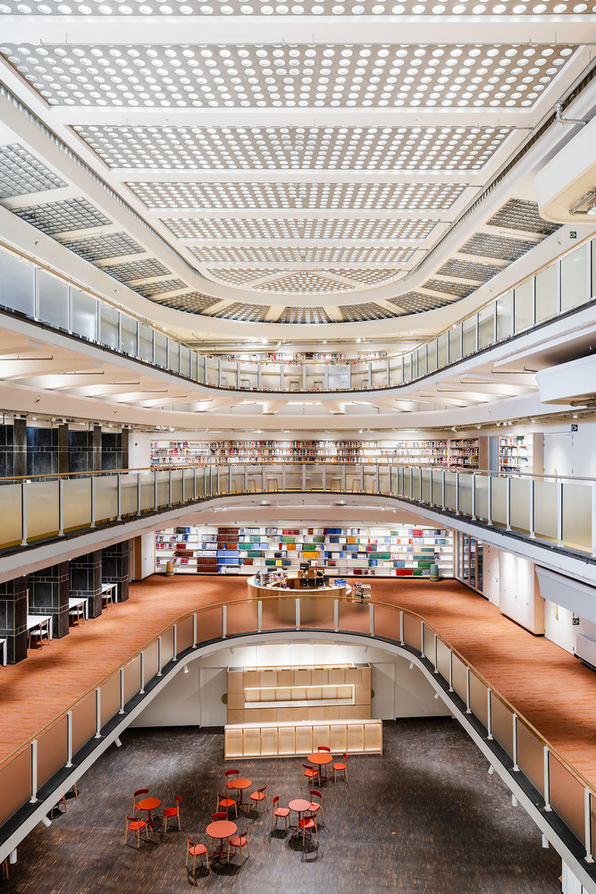 The existing building formed the ideal framework for a contemporary learning platform - especially its original fifties design. The original grandeur was restored, along with a few valuable interventions - including conforming it to current legislation on accessibility and fire safety. The main entrance was retained on Jezusstraat, with a limited (pop-up) hospitality area to the side. The main building is located in the middle of the building block and was originally a beautiful atrium, spreading from the ground to the third floor.