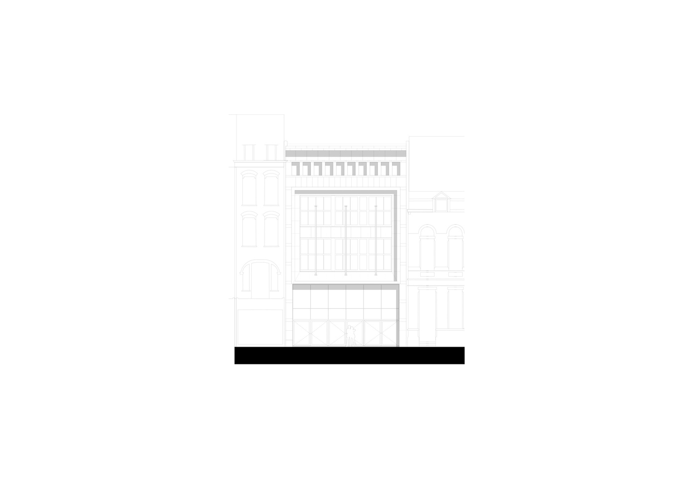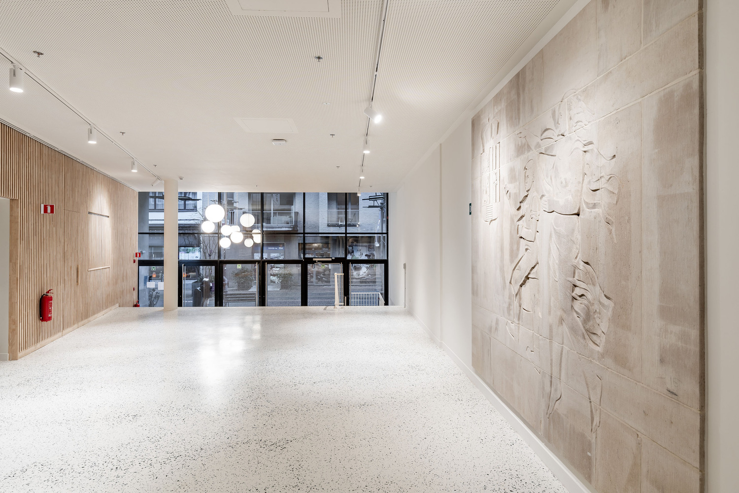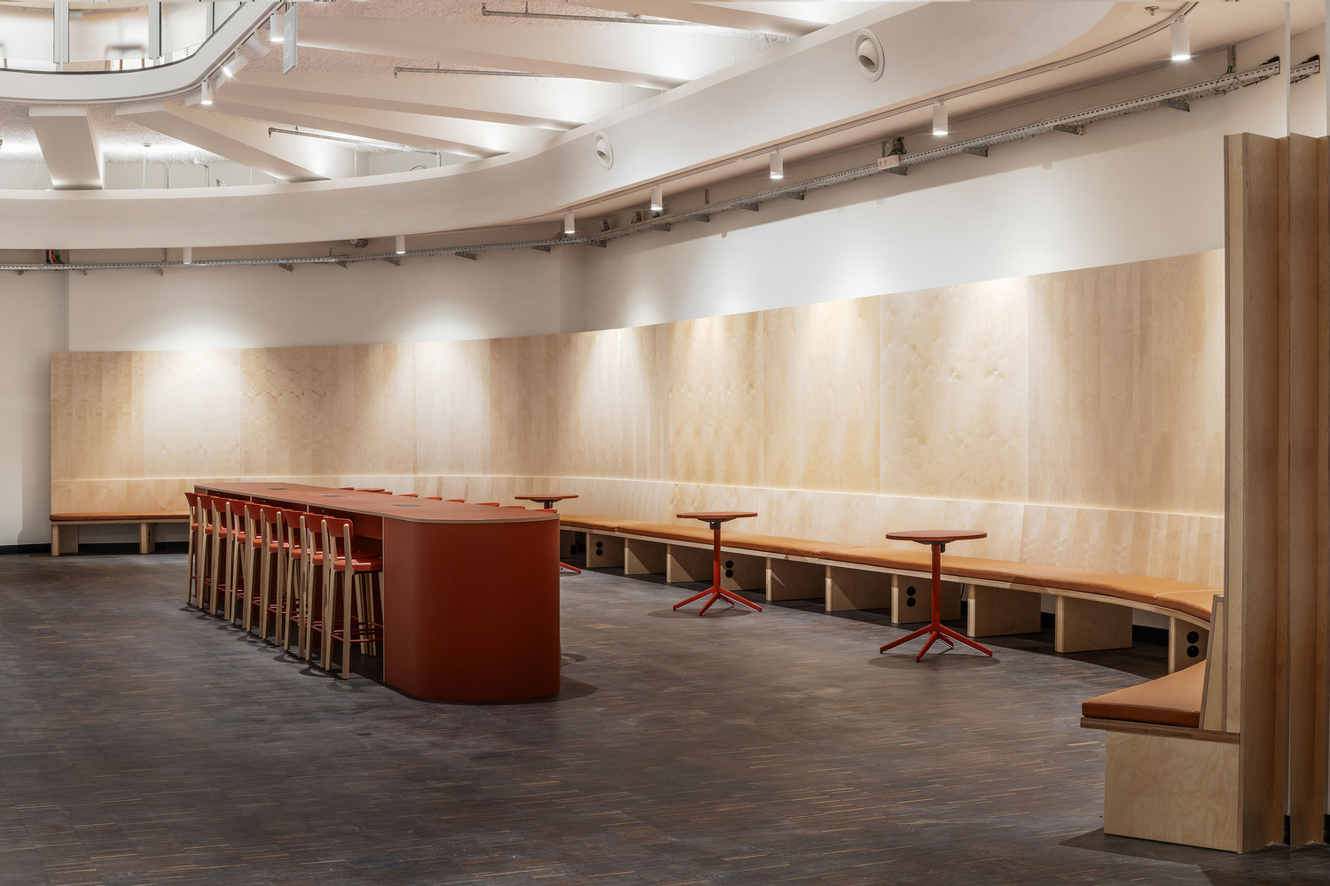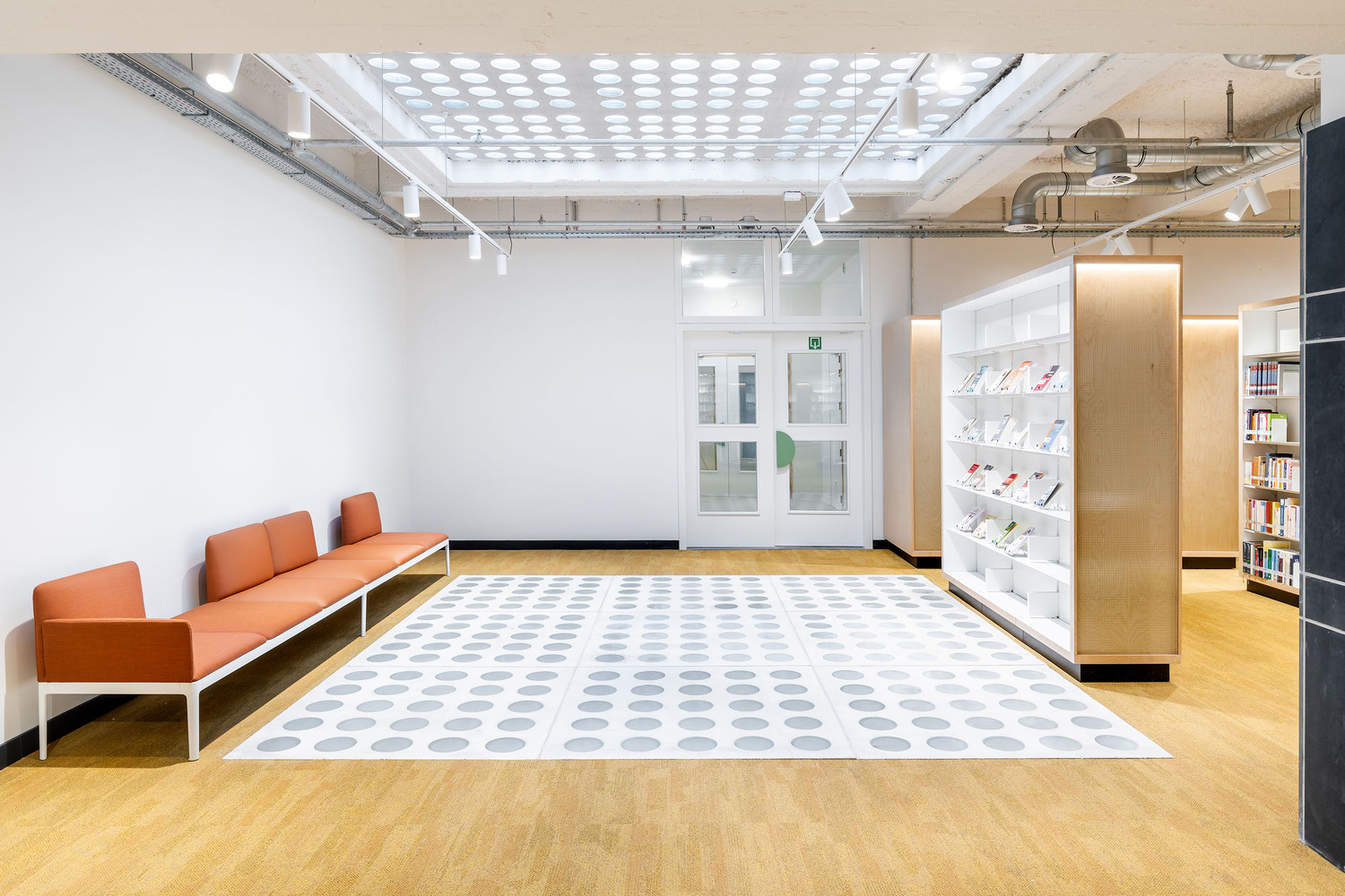The existing building formed the ideal framework for a contemporary learning platform - especially its original fifties design. The original grandeur was restored, along with a few valuable interventions - including conforming it to current legislation on accessibility and fire safety. The main entrance was retained on Jezusstraat, with a limited (pop-up) hospitality area to the side. The main building is located in the middle of the building block and was originally a beautiful atrium, spreading from the ground to the third floor.