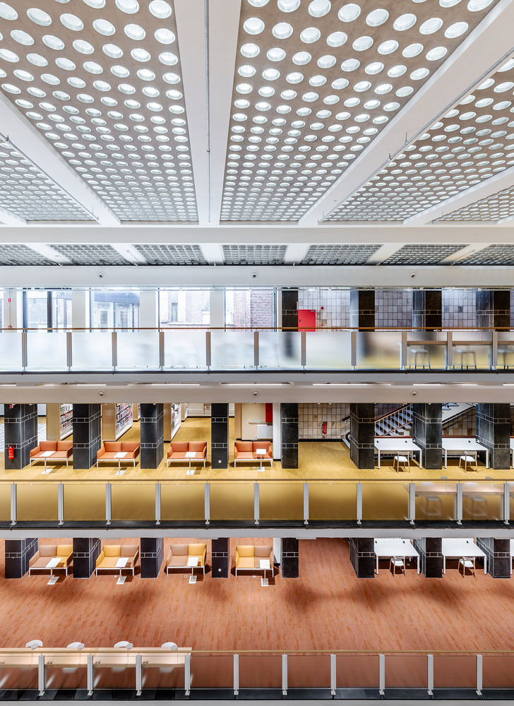 앤트워프의 역사적인 중심지인 제주슈트라트에 있는 옛 주정부 안전 연구소를 개조 및 복원했습니다. 이 건물은 루벤대학교 학생들(예술학부, 경제학부, 경영학부)을 위한 새롭고 혁신적인 학습 환경으로 탈바꿈했습니다. 현재 이 건물에는 조용한 작업 공간과 그룹 작업실이 있는 도서관, 카페테리아가 있는 회의 공간, 강당, 최첨단 언어 및 통역 실험실, 조용한 방 등 여러 강의실이 있습니다. 이 건물은 2019년부터 부동산 유산 목록에 포함되었지만, 높은 유산적 가치에도 불구하고 보호 대상은 아닙니다. 하지만 콘크리트 구조, 아트리움, 아트리움 위의 유리 지붕 천장, 기념비적인 화강암 계단 등 몇 가지 독특한 요소로 인해 보존 가치가 높습니다. 내부 공간은 이러한 고풍스러운 요소를 중심으로 복원되었습니다. translate by DeepL