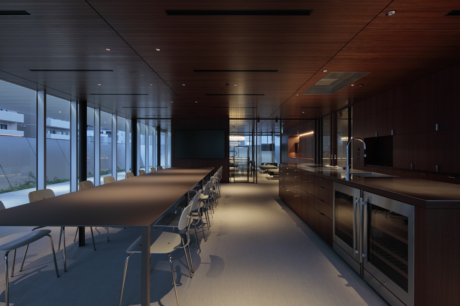 The project is a relocation of the headquarters of a game production company based in Tokyo. It aims to become a place for the highest level of creation that captivates fans worldwide and supports the foundation of the game production process. As almost all employees engage exclusively in creative operation, we focused mainly on providing a balance between concentration and relaxation while significantly removing the burden of operational work. We strived to achieve them by introducing slanted walls that characterize the exterior and a system with tablets to control all facilities, including security.