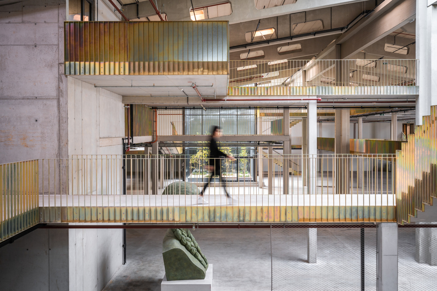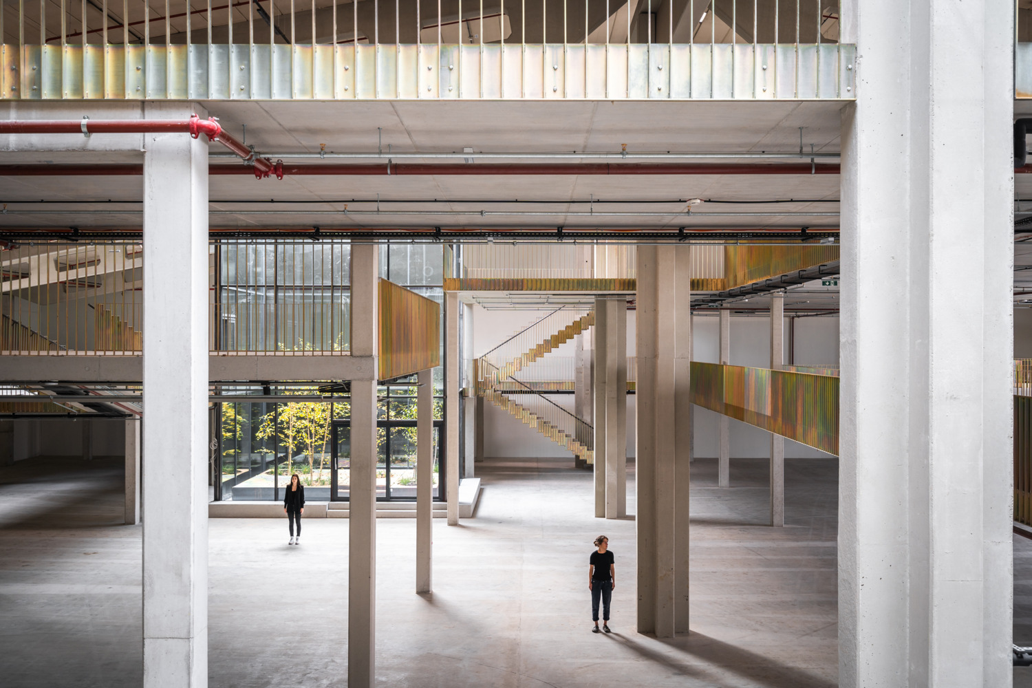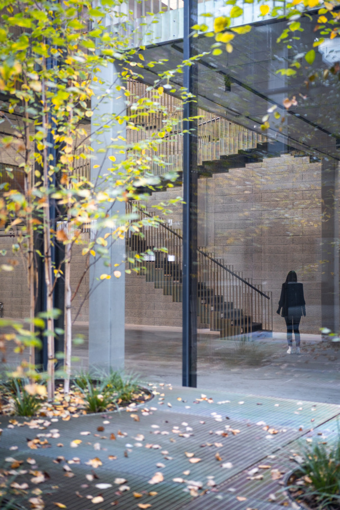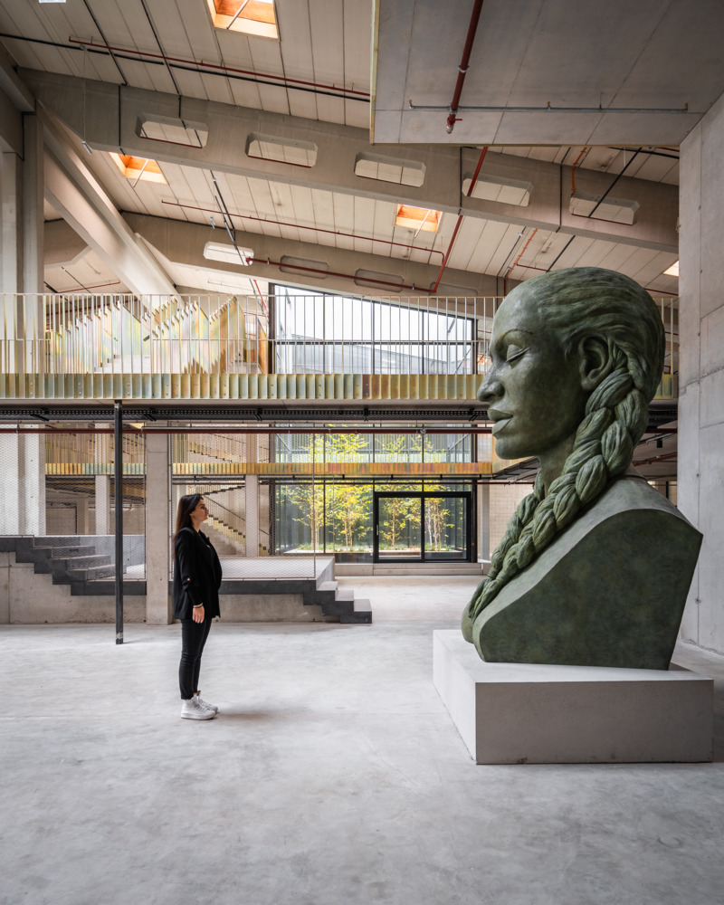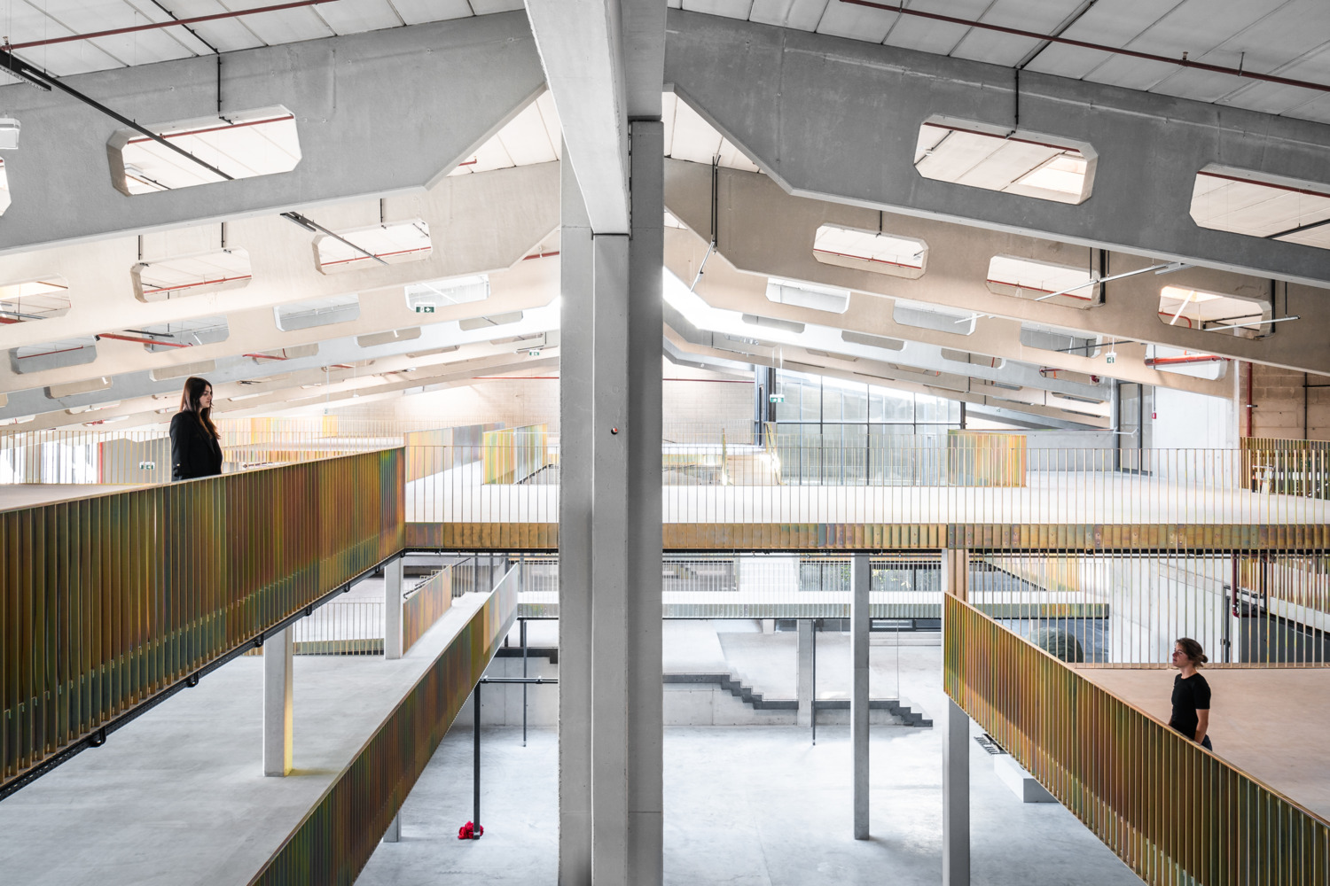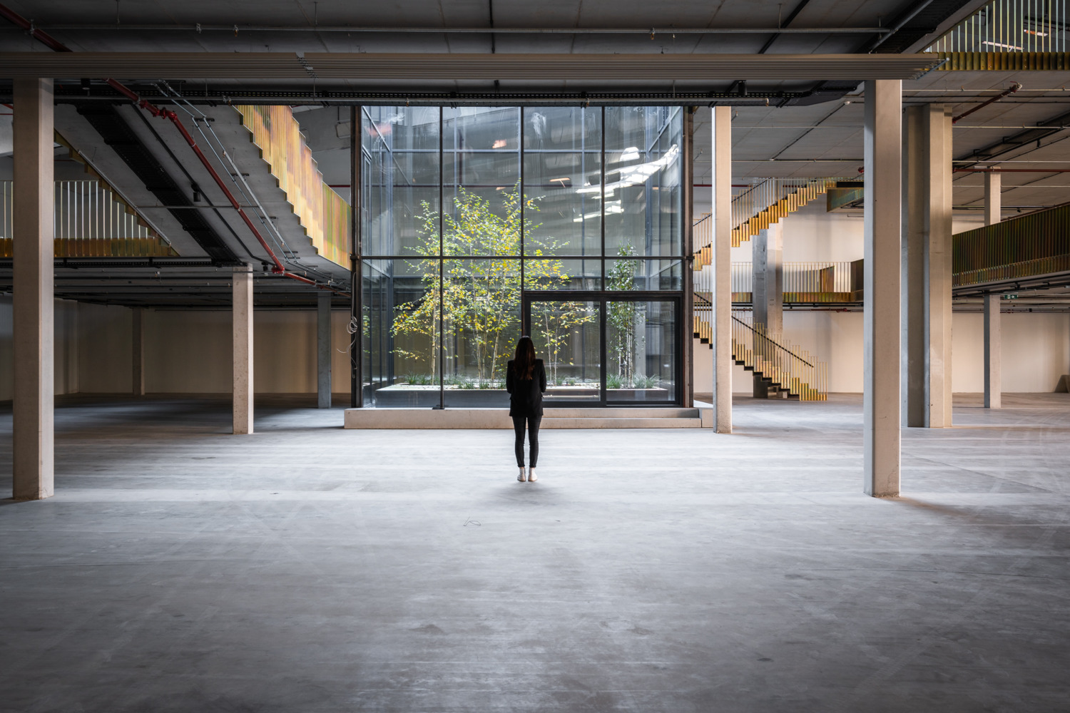 Once the halls have been emptied, their full potential is revealed. Enormous room heights, raw materials, and large column grids become visible. Compared to a classic office building, these parameters create incredible flexibility for use - and great scope for exciting architecture. The depths of the hall combined with small façade areas create a difficult lighting situation, which is responded to with minimally invasive architectural interventions. Generous atriums cut into the existing roof bring daylight and a real outdoor space into the center of the warehouse.