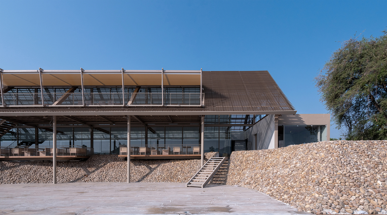Create an area surrounding the riverbank that is at the level of the water surface for the purpose of being used as a pier, raft dock, and various outdoor activities in order to maintain important local activities along the River Kwai. To demonstrate the importance of choosing local materials in new ways, such as fist-sized honey color river Gravel being used instead of artificial materials commonly used in the area. In building the retaining wall, the main reason was that honey color river gravel is more durable and difficult for water to penetrate, as well is being an important mineral stone with a unique color that was specifically mined in Kanchanaburi Province, creating harmony. With the surrounding nature itself
