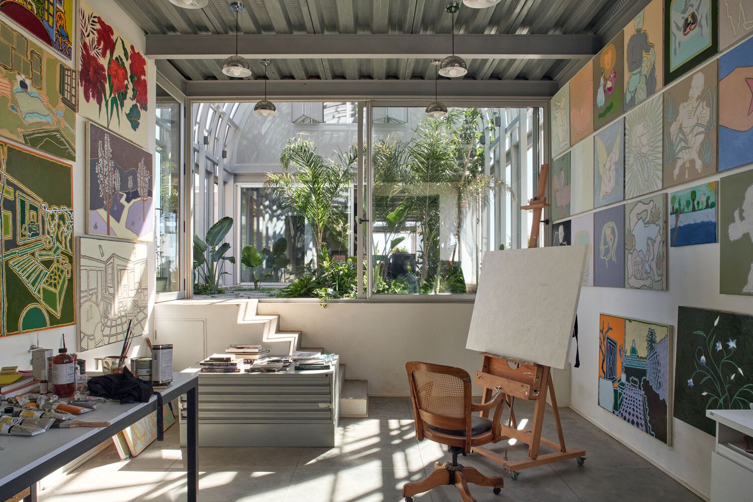 이 길쭉한 블록을 여러 중정과 내부 공간이 섞여 있도록 분할했다. 가장 중요한 공간은 '겨울 정원'으로, 통합된 생활 공간과 작업 공간 사이의 중간 공간이다.