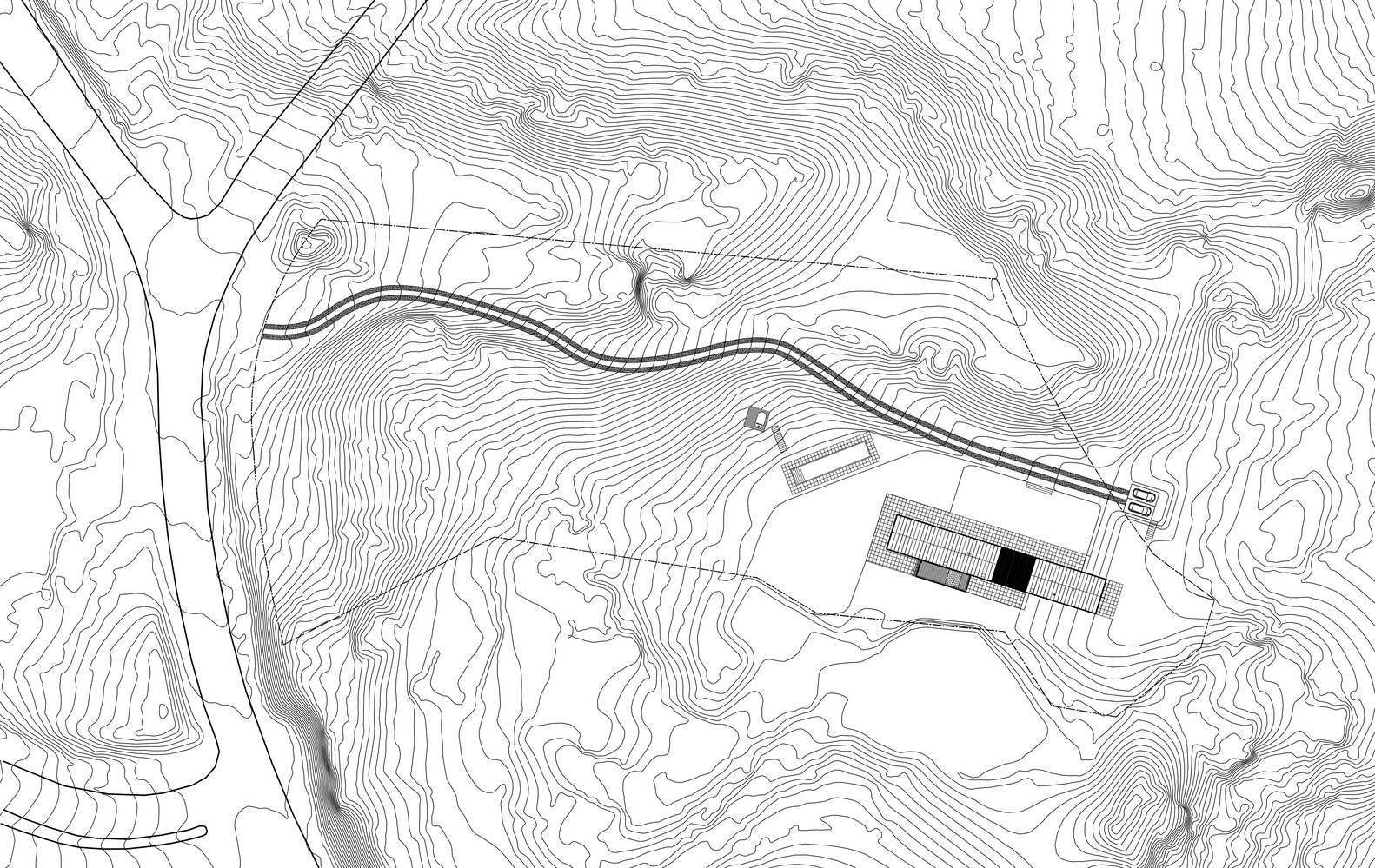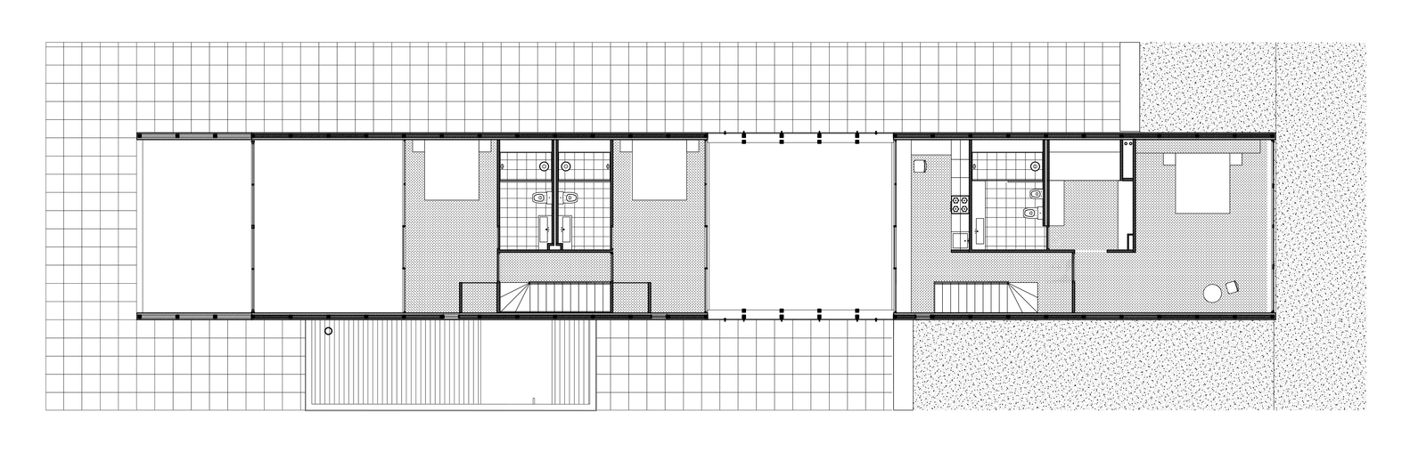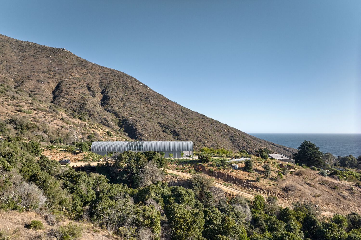 The limitations of the site where the Casa Taller Zapallar is located suggest the construction of a house in the form of a long block, perpendicular to the coastal strip and on the flat section of the terrain. A block narrow enough to be located at the southeast end will allow protected views of the ocean without being seen by neighbors to the west and northwest. Assuming this fact, it opens the door to integrating a range of desires on how to inhabit this building.