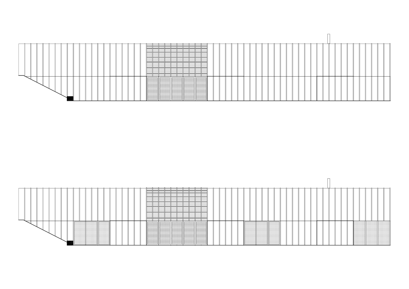 We segmented this elongated block so that courtyards and interiors are interspersed within the same volume. The most important would be a larger "winter garden". An intermediate space between the integrated living area and the workspaces – the most urban core of the set.