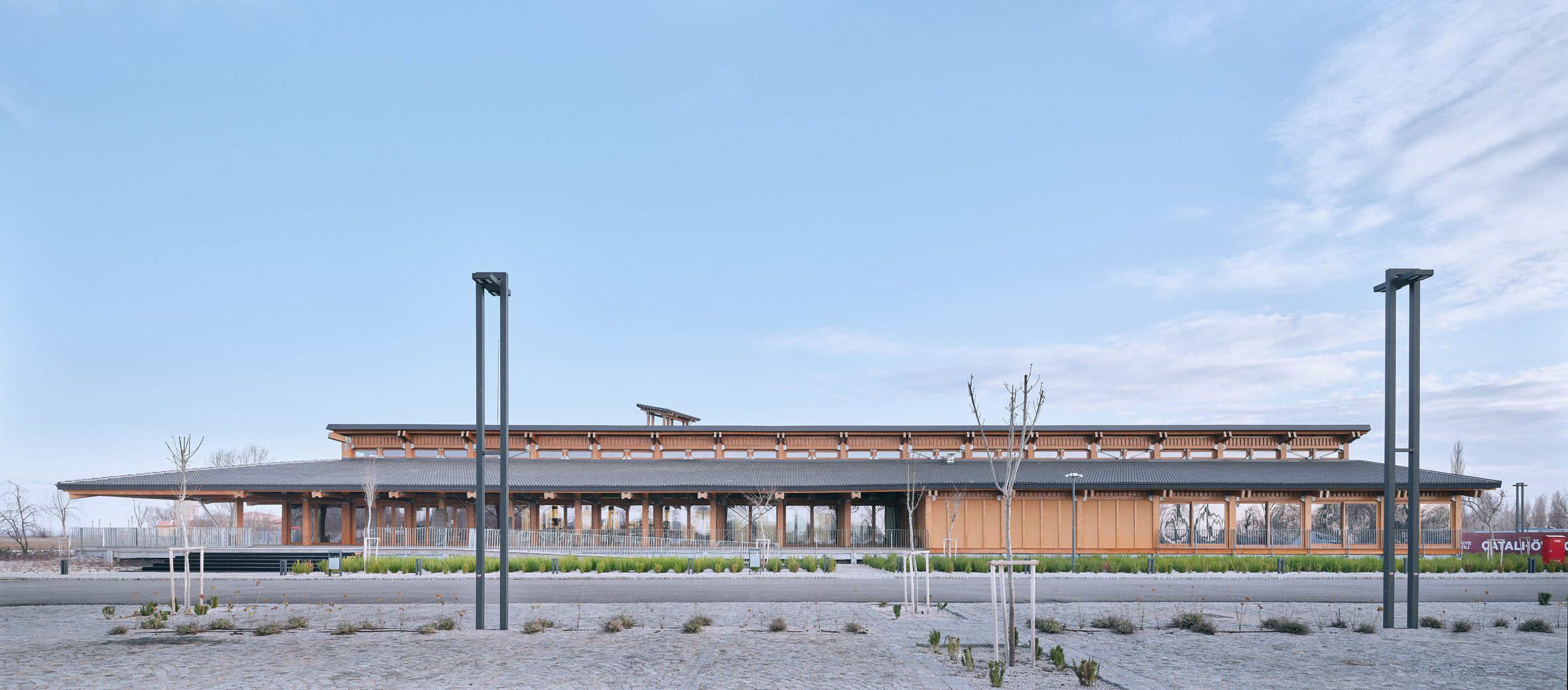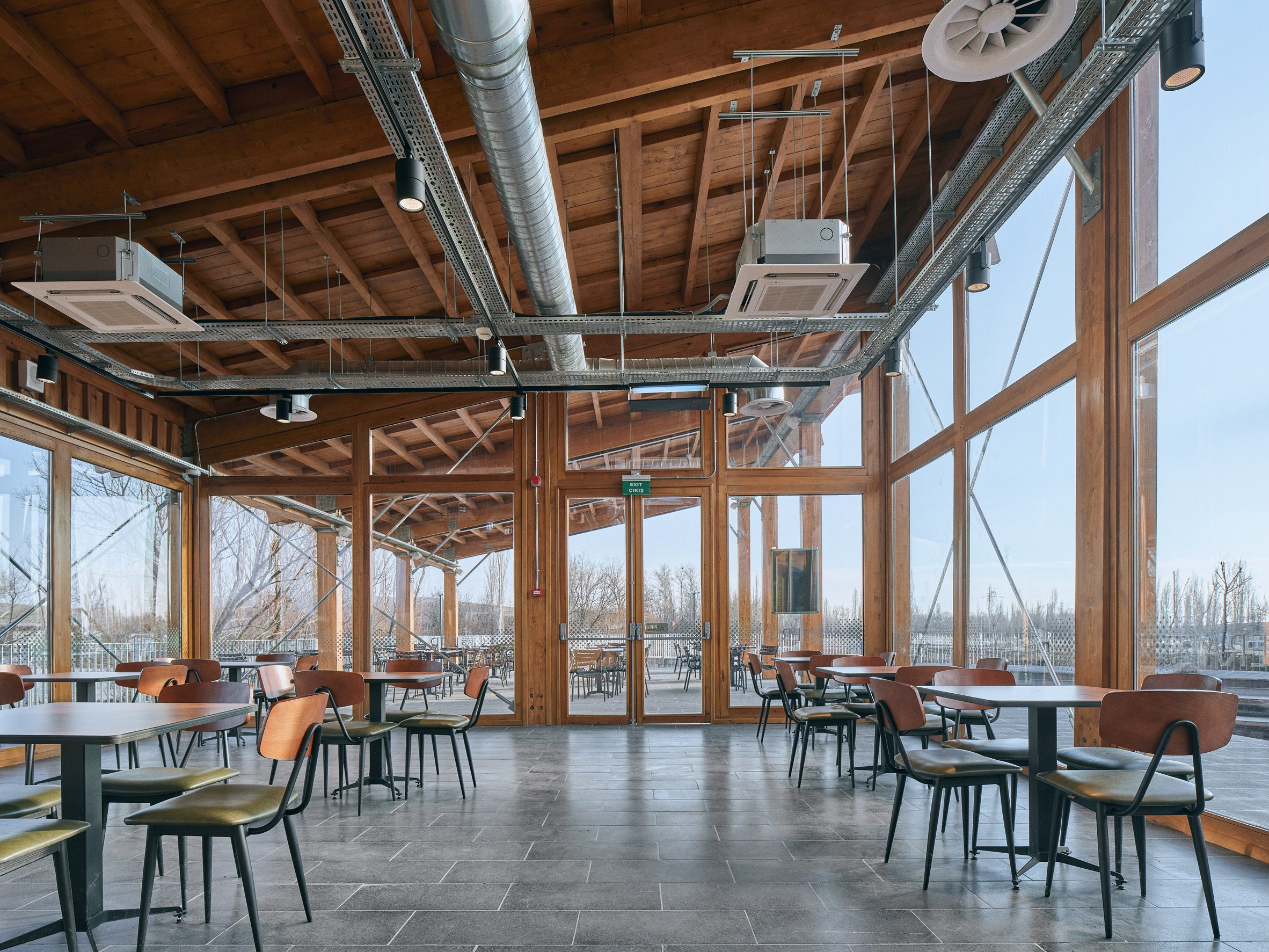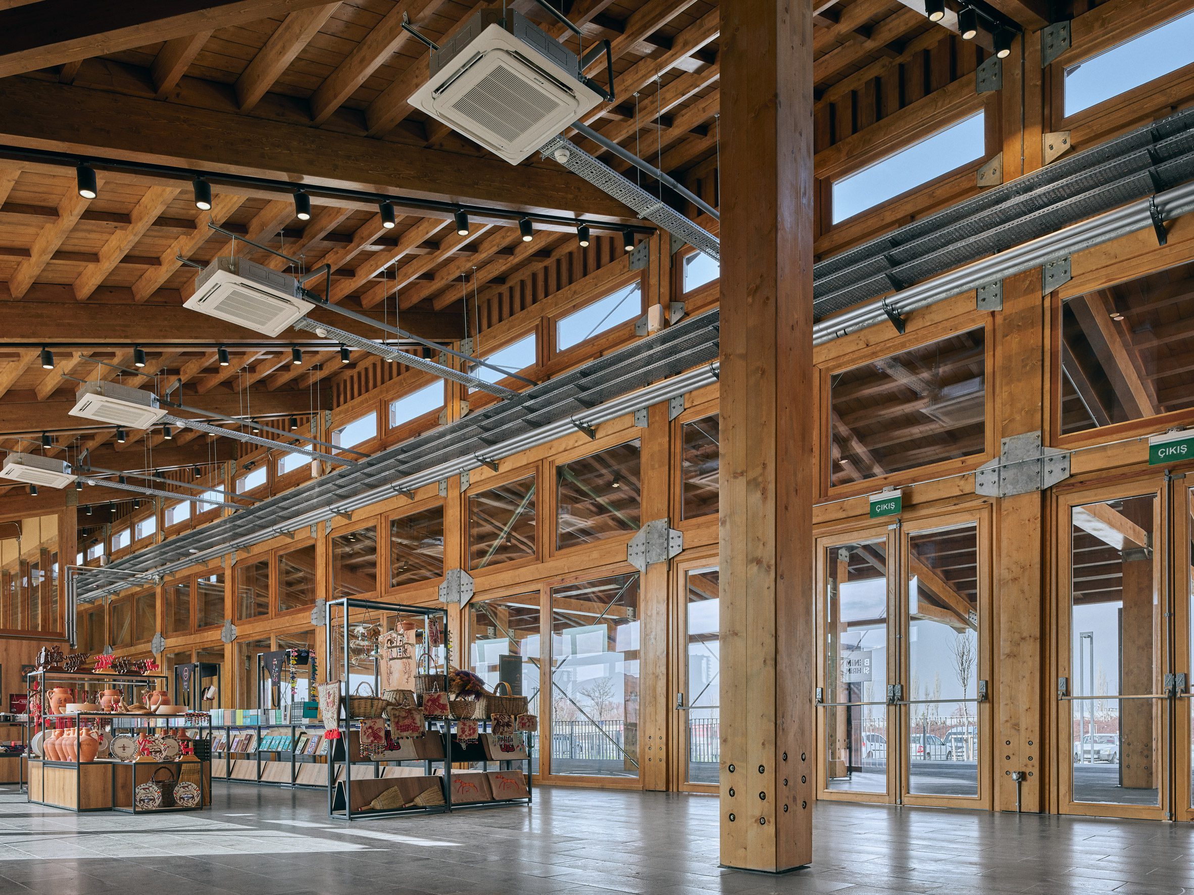 아나톨리아 풍경과 조화를 이루기 위해 목재 구조물을 선택하여 주변의 흙벽돌 건물들과 대조를 이루면서도 잘 어울린다. 지속 가능성을 고려한 디자인은 환경적 민감성을 반영한다.