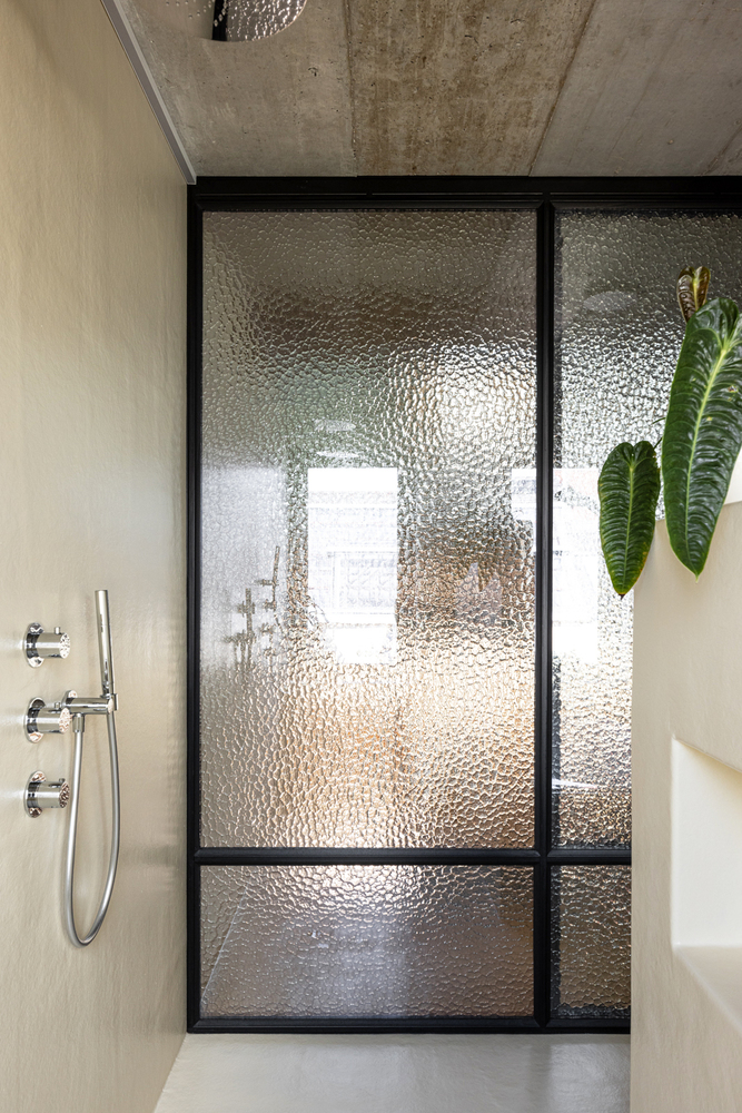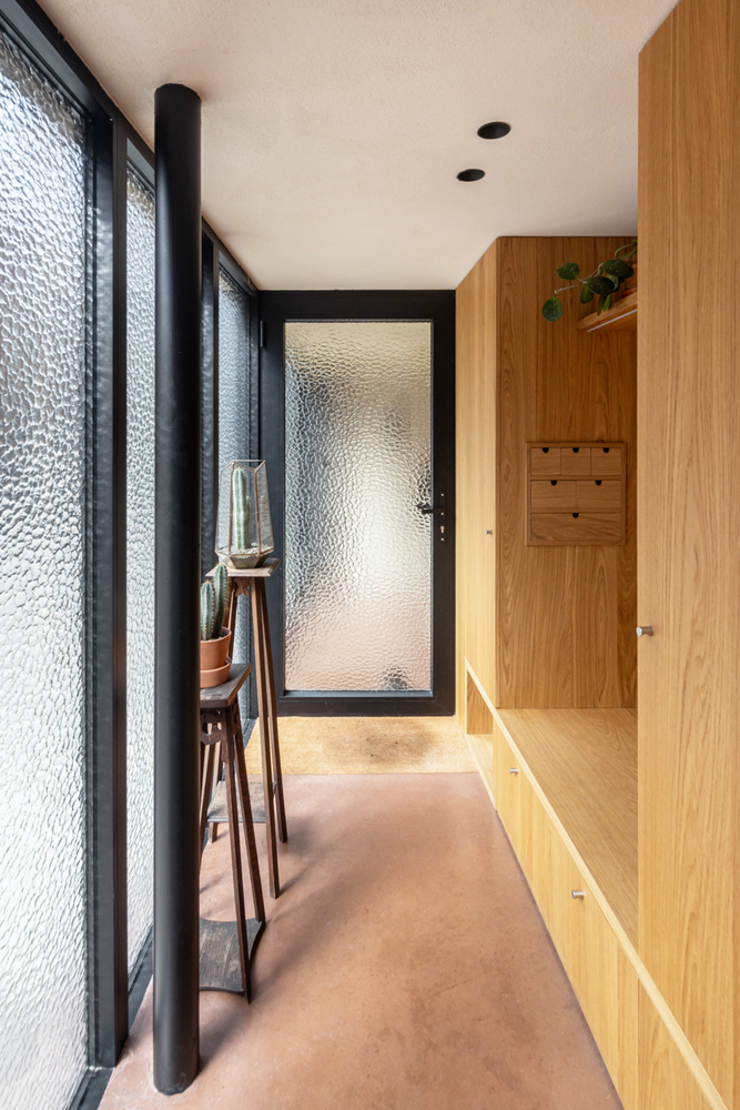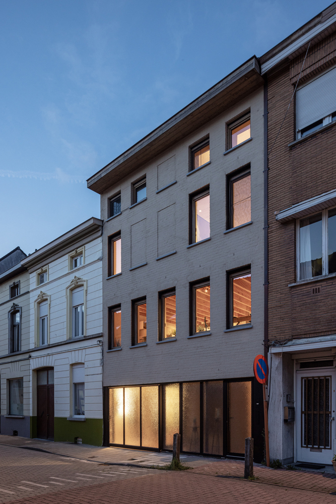 A brown polished concrete floor was placed in both the house and the stable, and the garden path with the same floor connects both entities. The garden in between is spacious and quiet, which is a rare and special quality at this location in a densely populated neighborhood and so close to the Ghent ring road. A mix of evergreen climbing plants, shrubs and trees grows here with a distinct leaf structure that will make the city walls disappear into the background year after year.