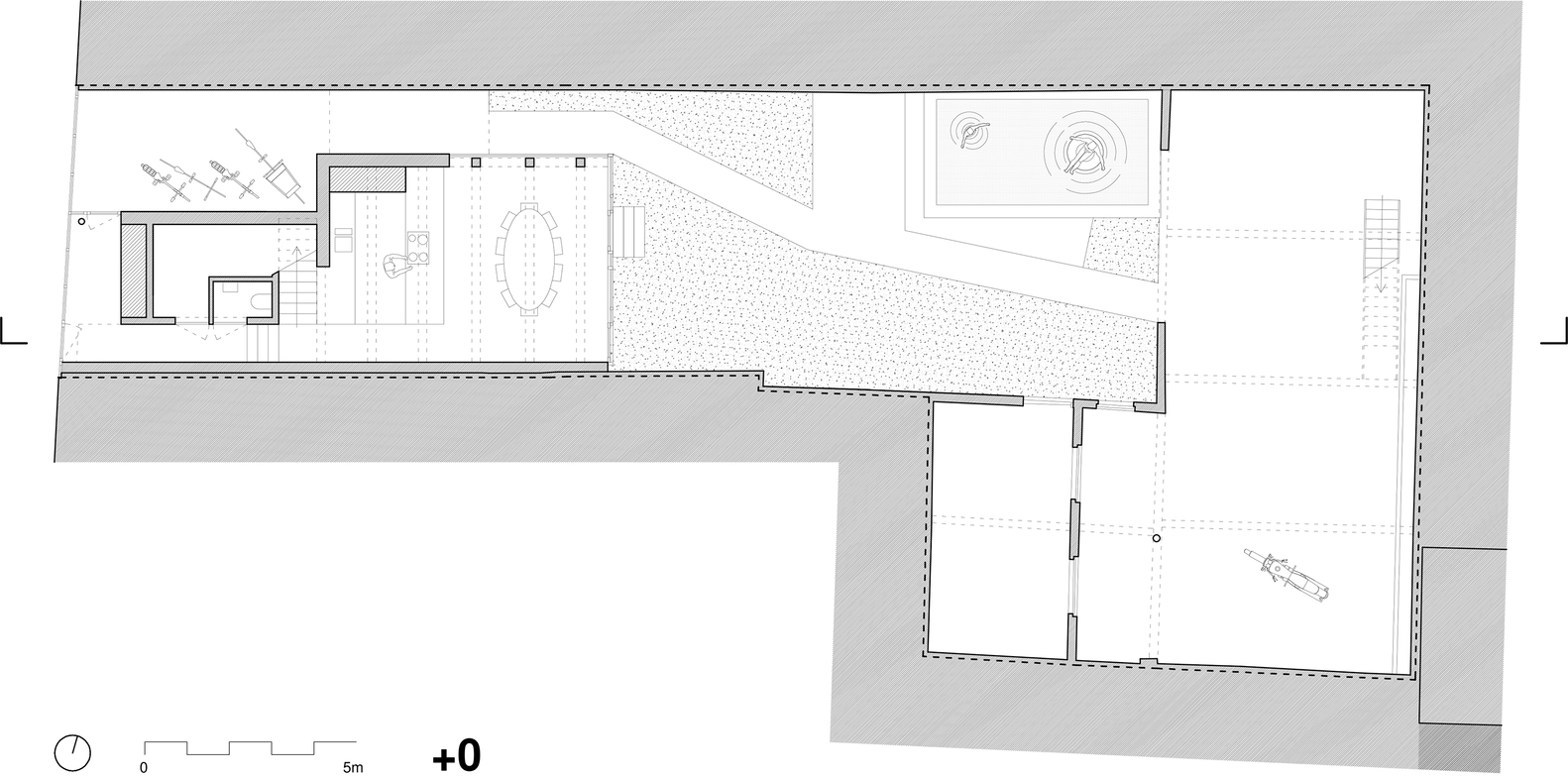 어두운 마굿간은 투명한 지붕을 통해 빛이 들어오도록 변형되었다. 마굿간은 정원의 확장으로, 좌석 공간과 Miel의 오토바이 작업 공간으로 활용된다.