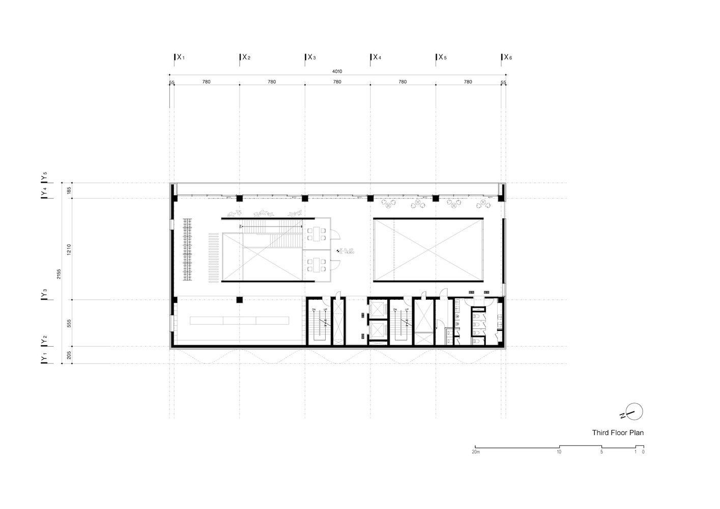 *The community zone with street frontage that consists of the WM Café and garden, the WMission academy, workshop, and exhibition spaces. A three-floor height atrium articulates the public program of the building.