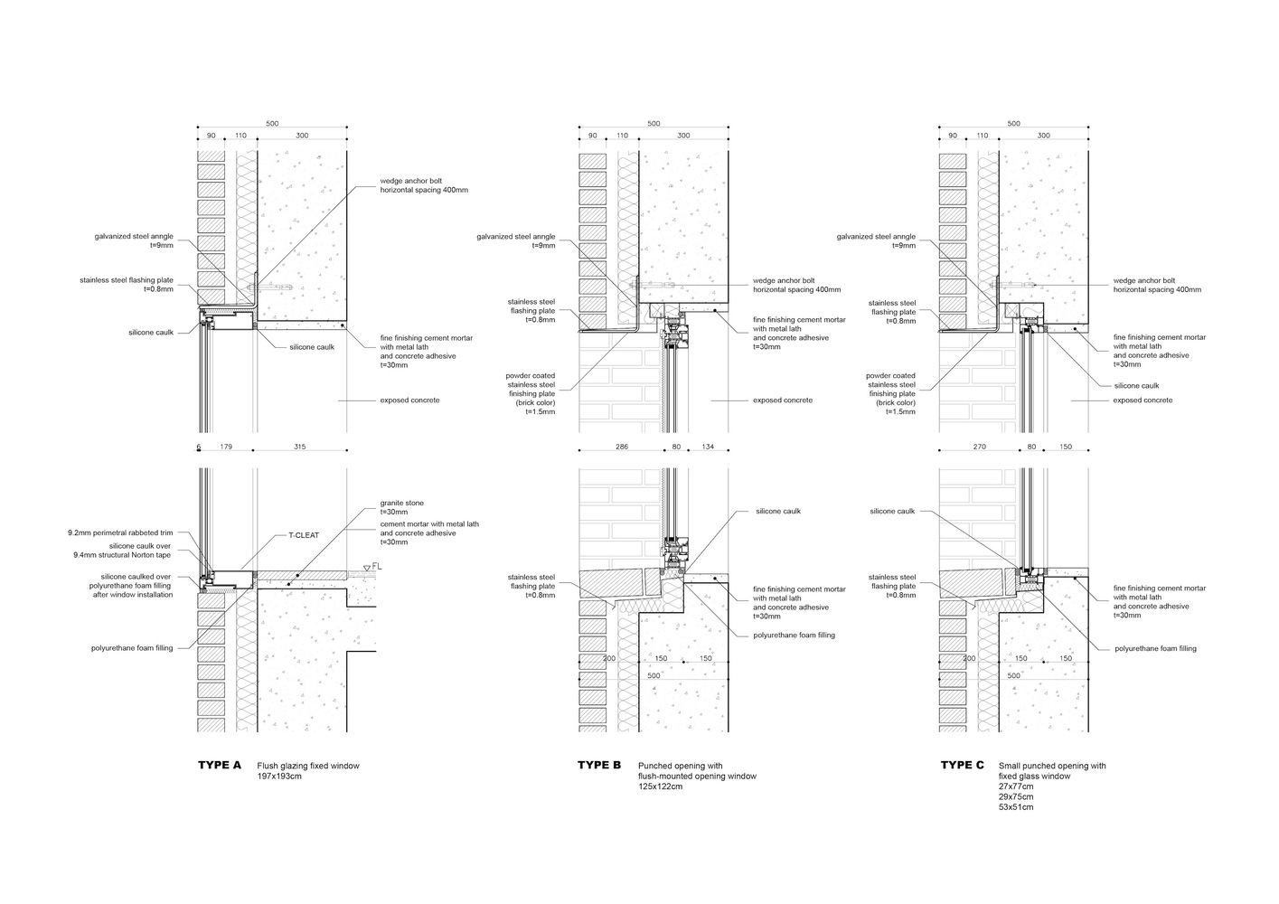 무작위 개구부: 북쪽 파사드는 공간의 프로그램적 요구에 따라 세 가지 유형으로 분류된 개구부로 구성되어 있습니다.