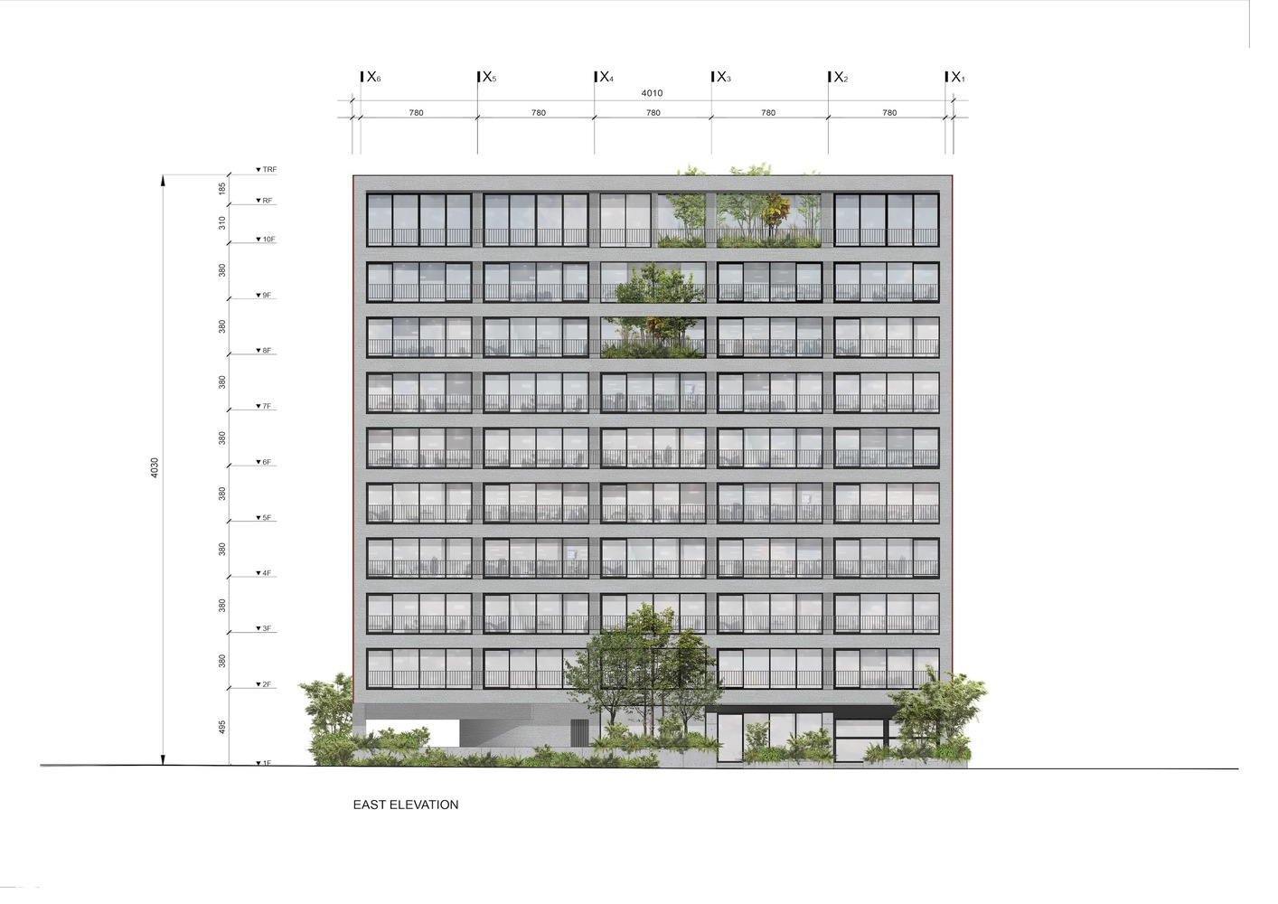 각 층은 반야외 이층 높이의 정원을 포함하여, 수직적인 이웃을 형성하며 넓은 야외 공간과 내부 파티오가 상호 연결됩니다.