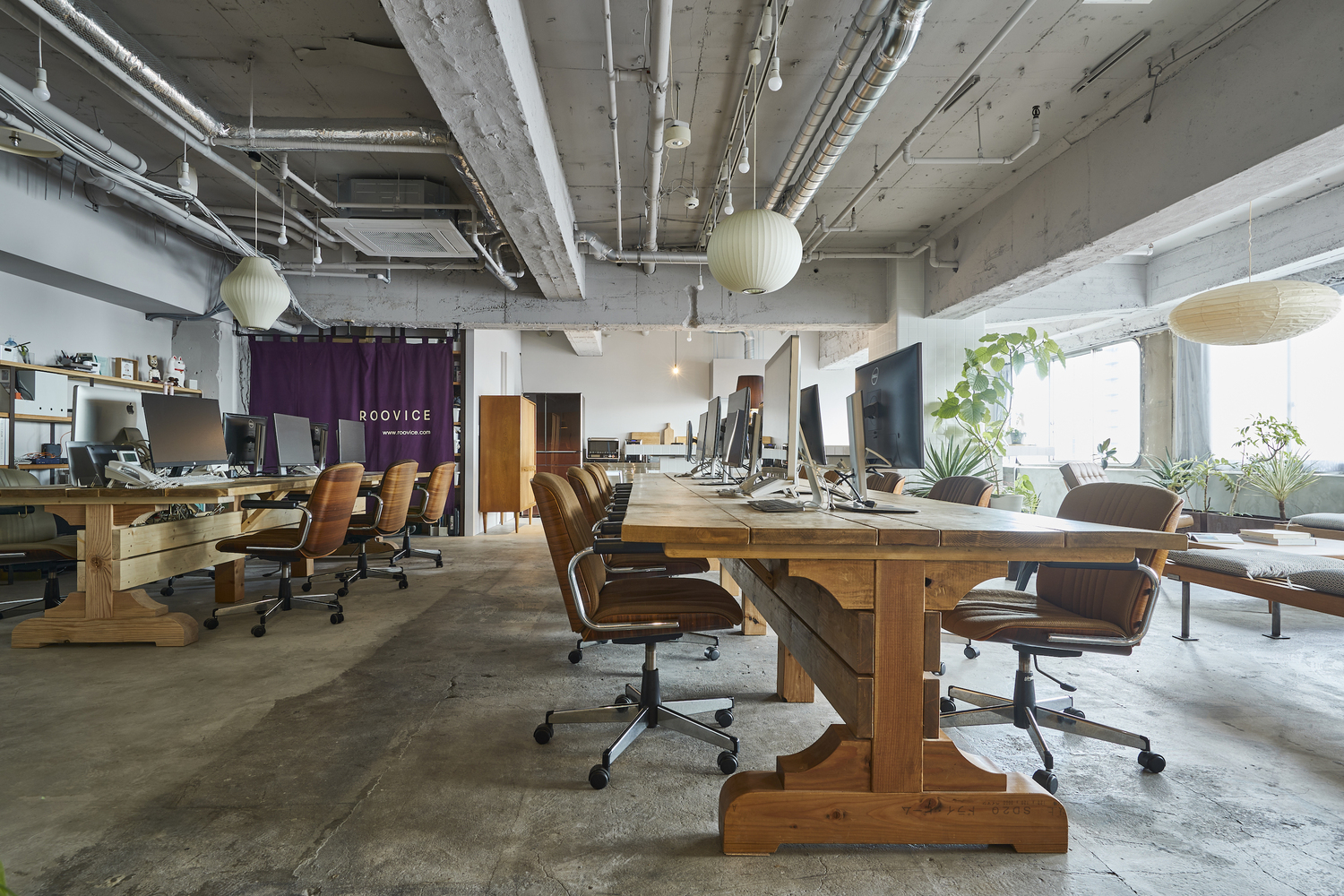 Roovice recently relocated its office onto the 11th floor of a 55-year old commercial building in Kannai, Yokohama. The previous location is set to be demolished soon, therefore we had to find an alternative working space for the company. Besides, the studio has been increasing its team lately, making us look for a more generous space. Roovice’s previous office was characterized by a domestic ambiance with particular attention to spaces for employees to relax and rest. We reject the idea of a merely efficient and undistracting workplace: instead, we encourage everyone to take time for themselves and avoid stress at all costs.
