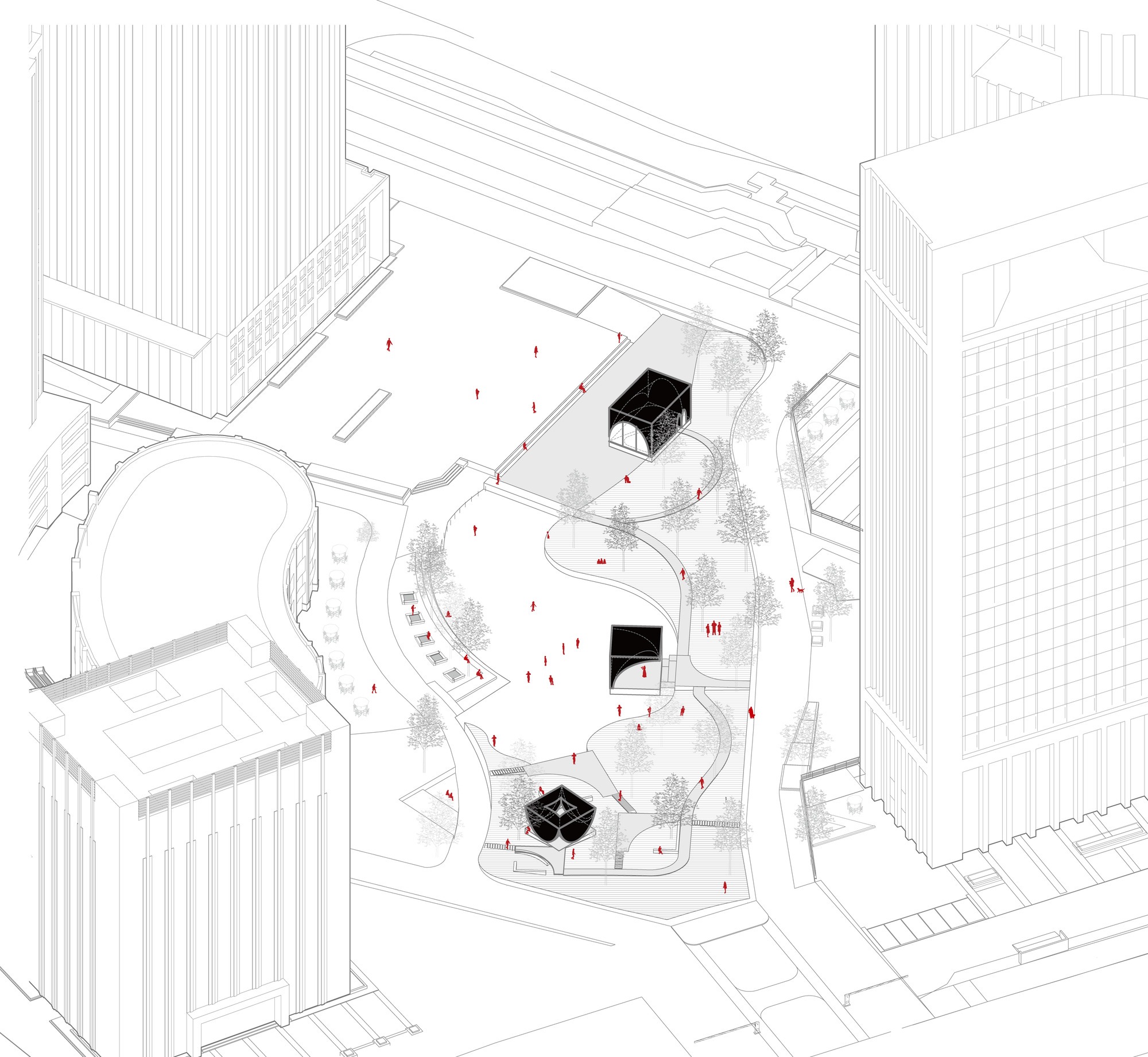 이 공간은 한국 전통 정자의 명상적 기능을 현대적으로 재해석한 것으로, 도심 속에서 자연과 교감할 수 있는 영적 피난처 역할을 한다.
