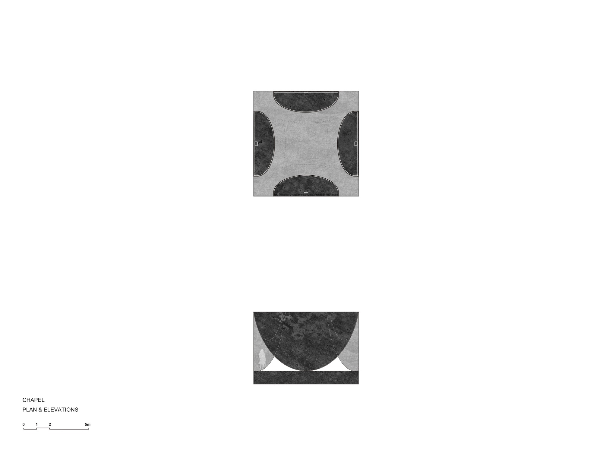 언덕의 나무들 사이에 자리한 은행나무 예배당은 은행잎을 닮은 거대한 네 개의 돌잎에 의해 공중에 떠 있다. 방문자들이 곡선형 금속 구체들 사이의 좁은 틈을 지나 중앙의 '빈 공간'으로 들어서면, 위를 올려다보며 변화하는 빛을 맞이하고 은행잎 사이로 춤추는 바람의 부드러운 속삭임에 귀 기울이게 된다.