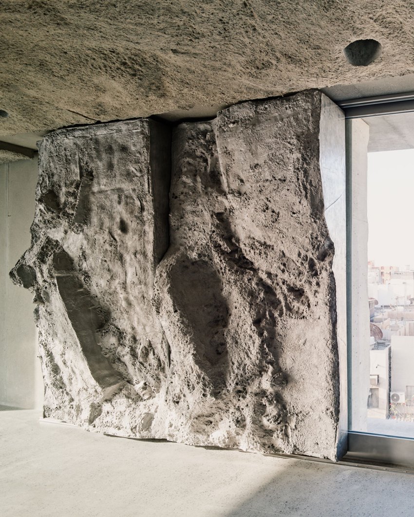 The sand casting technique is also repeated in the concrete floor slabs on the interior, maintaining the building’s unique theme throughout. Large shutters made of sand-casted aluminum with the relief facing towards the interior can be moved in front of the windows, providing natural light and ventilation while offering an artistic touch to the interior space. These aluminum casts are also hollow, allowing the interior of the casts to be seen through the windows.