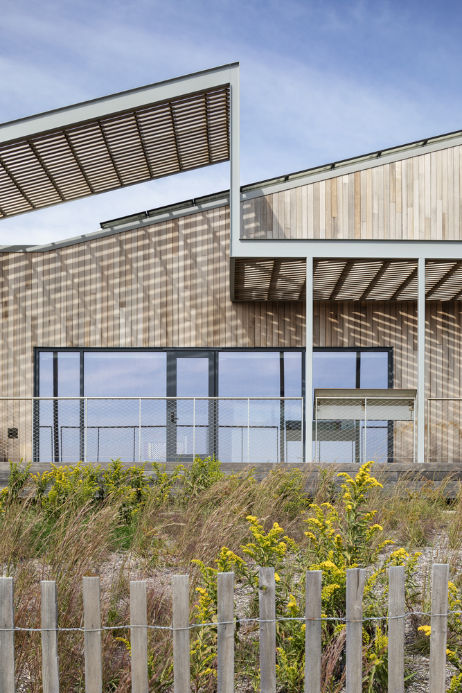 Born out of a public and private partnership spearheaded by New York State Parks, Recreation, and Historic Preservation in collaboration with Long Island Power Authority (LIPA), this pioneering building and landscape point to a carbon neutral future for New York State. Designed as a “chalet for all”, the building functions as a gateway to the stunning natural environment of Jones Beach West End 2, while inspiring visitors to become stewards of the environment.