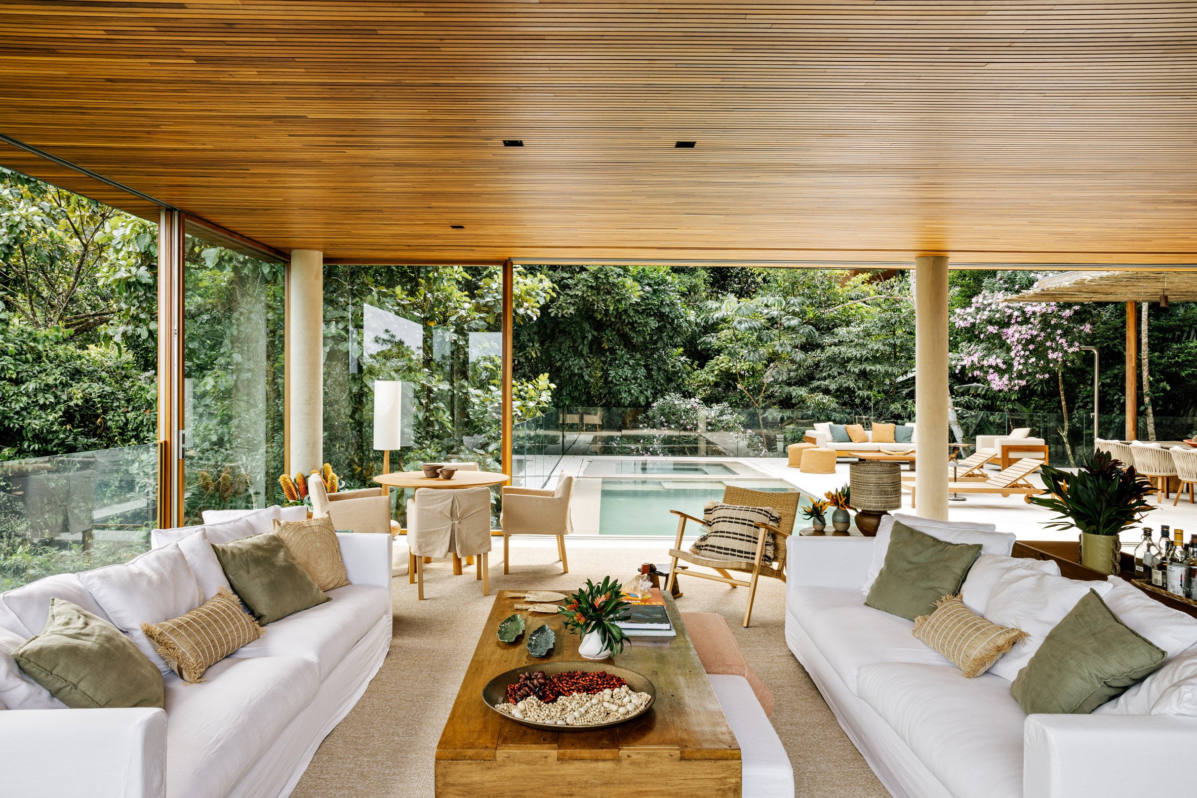 Known as Casa VJC Iporanga, the 660-square metre summer retreat is located in a residential condominium complex in Guarujá, roughly 100 kilometers southeast of São Paulo on the Atlantic coast.