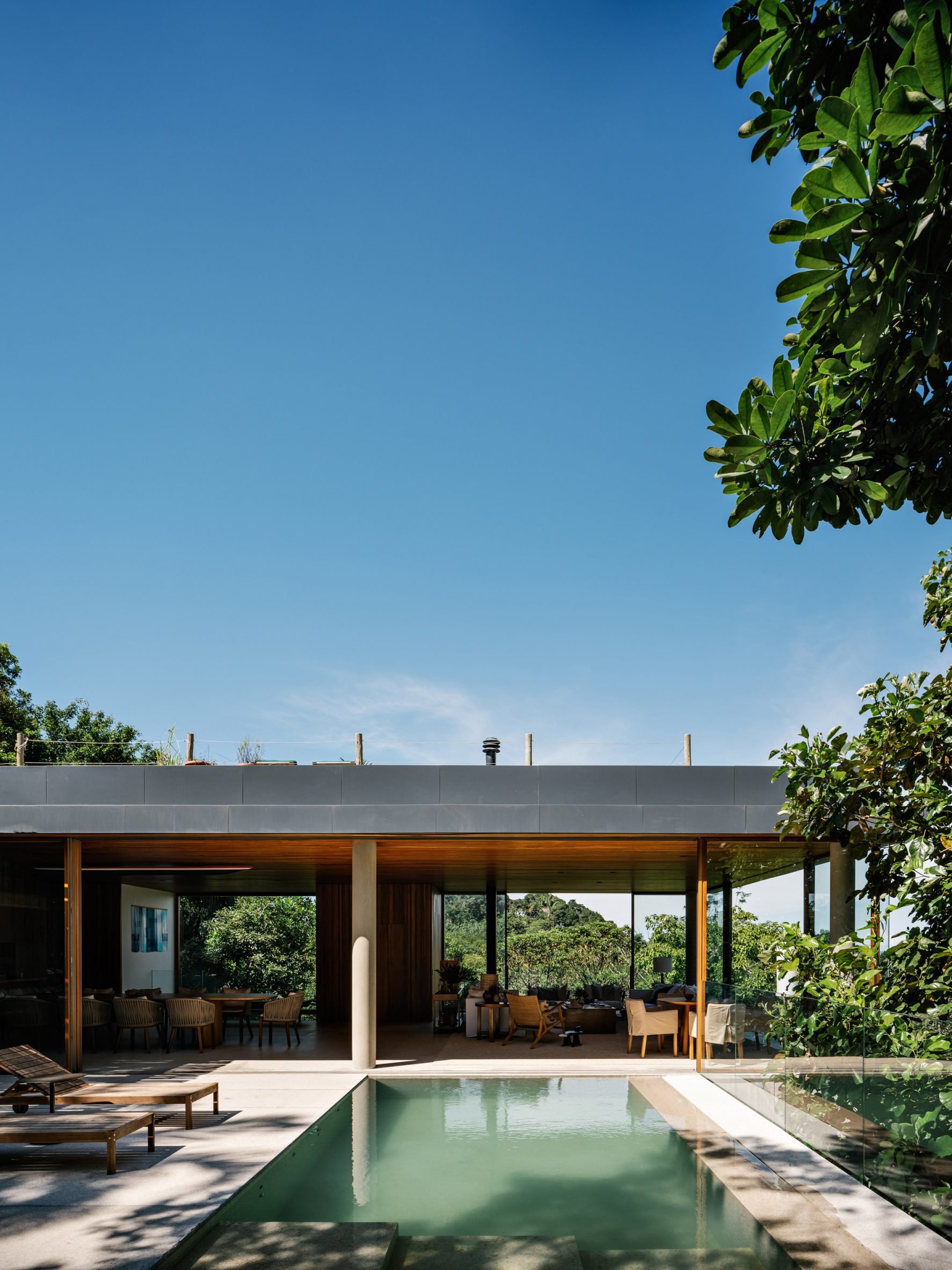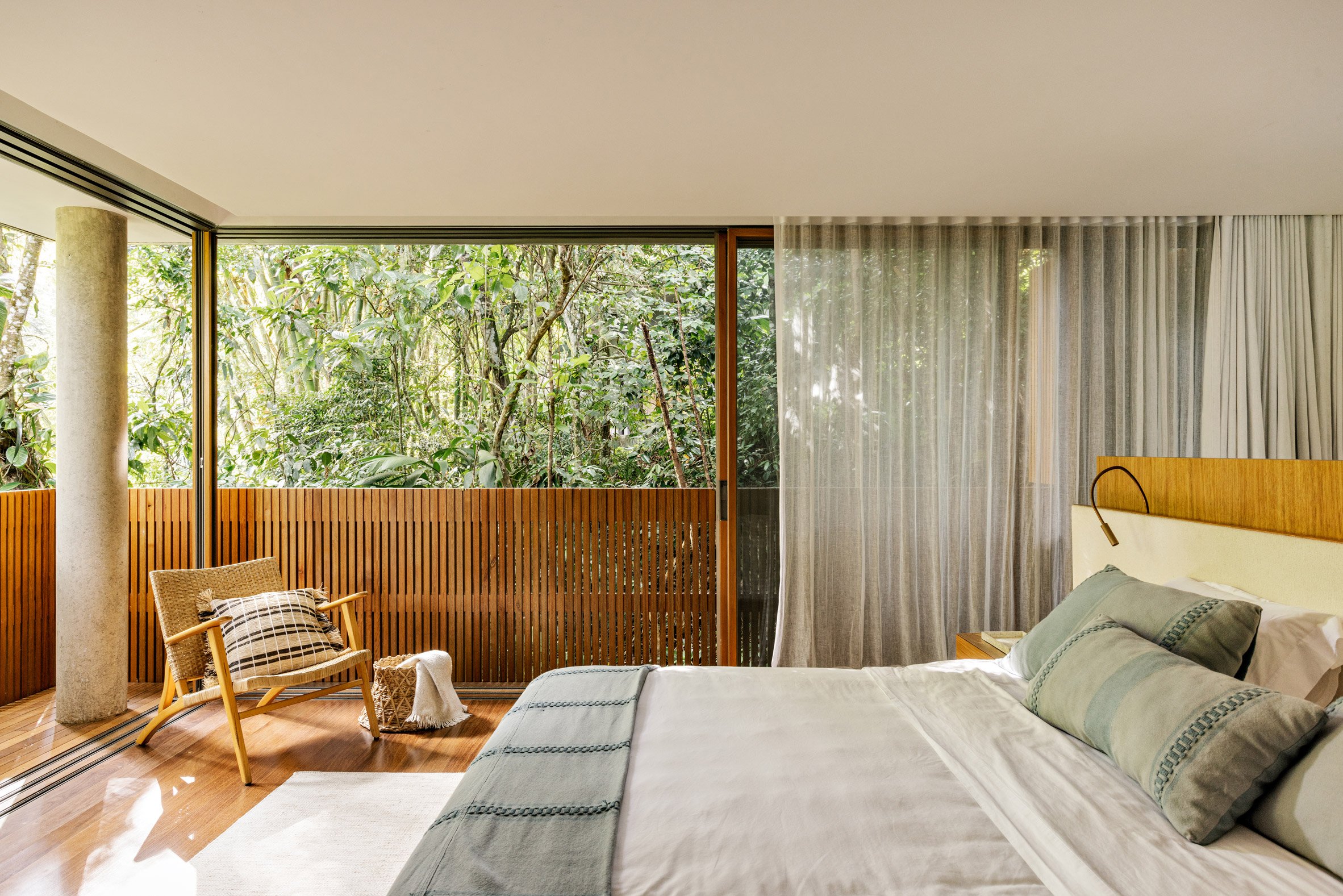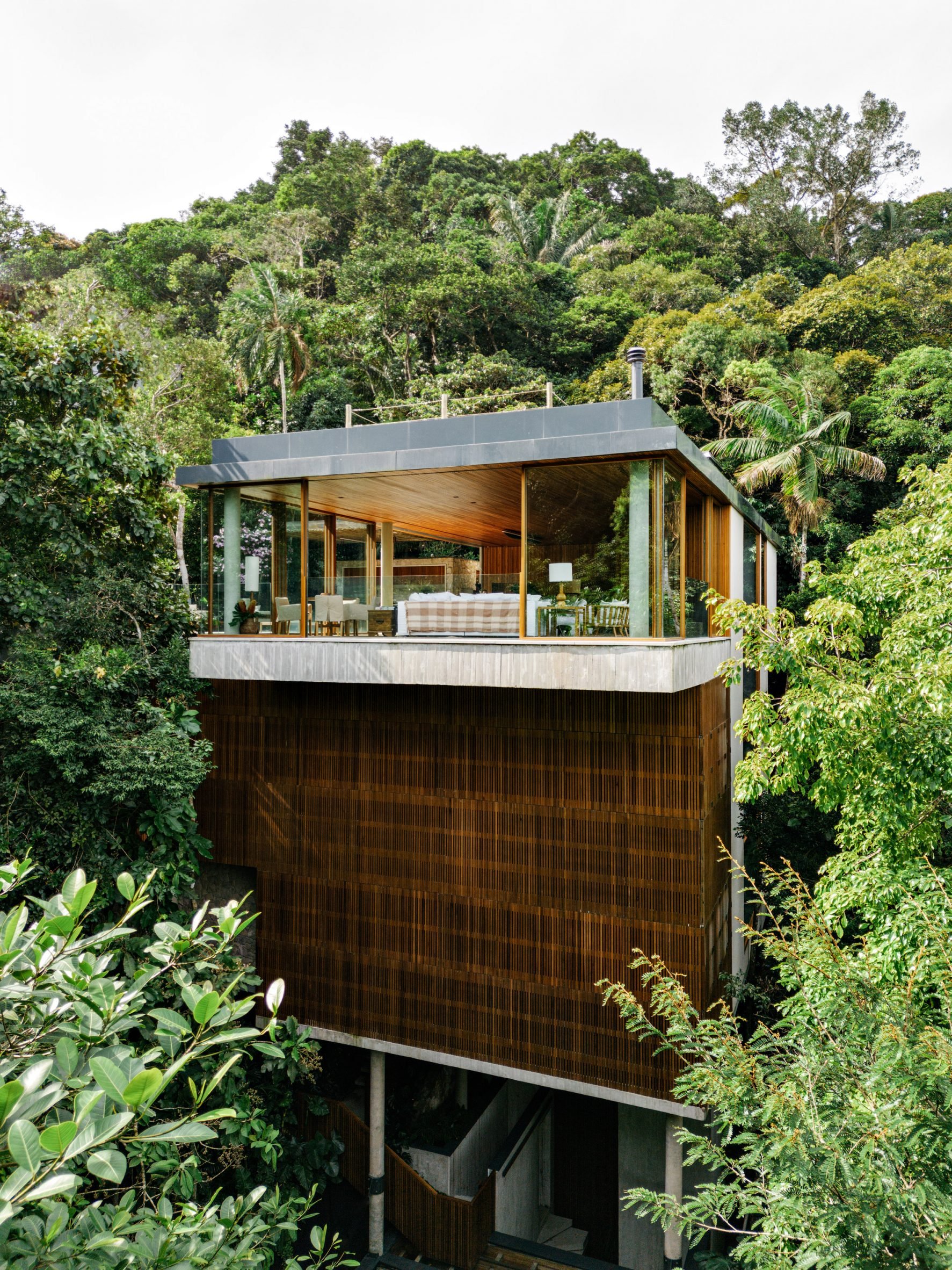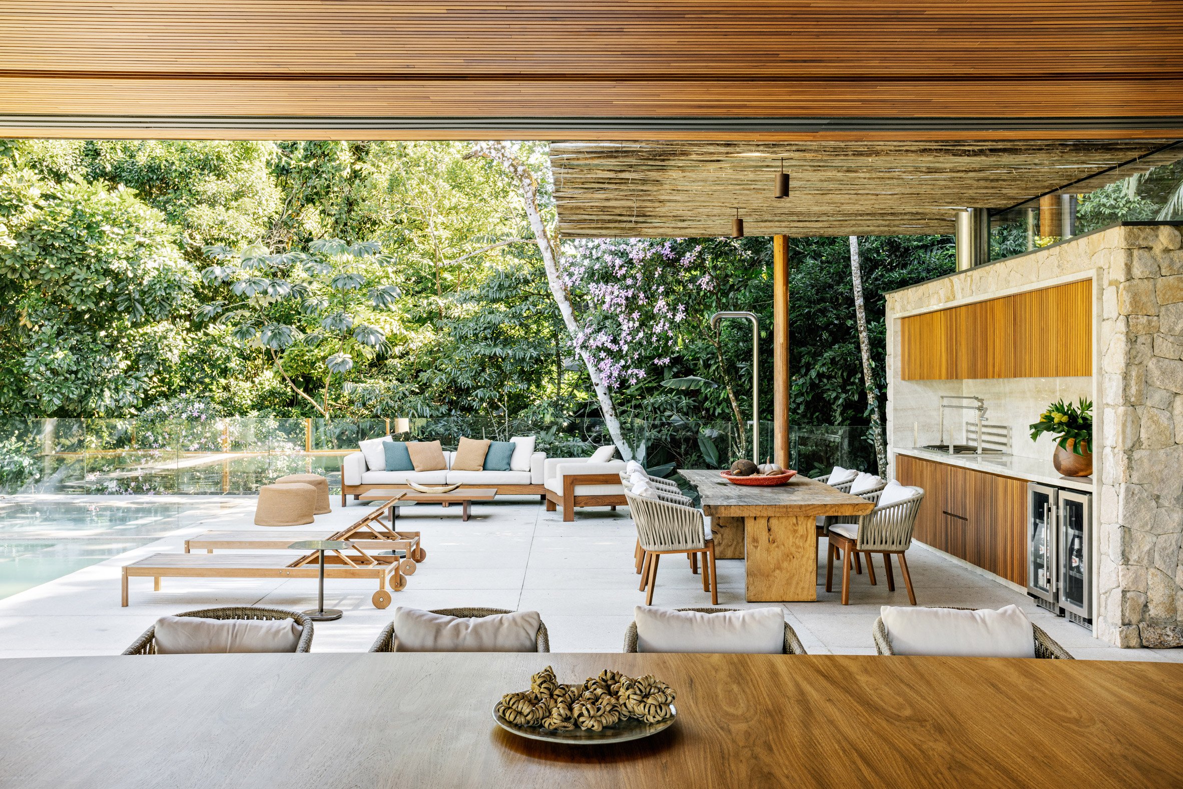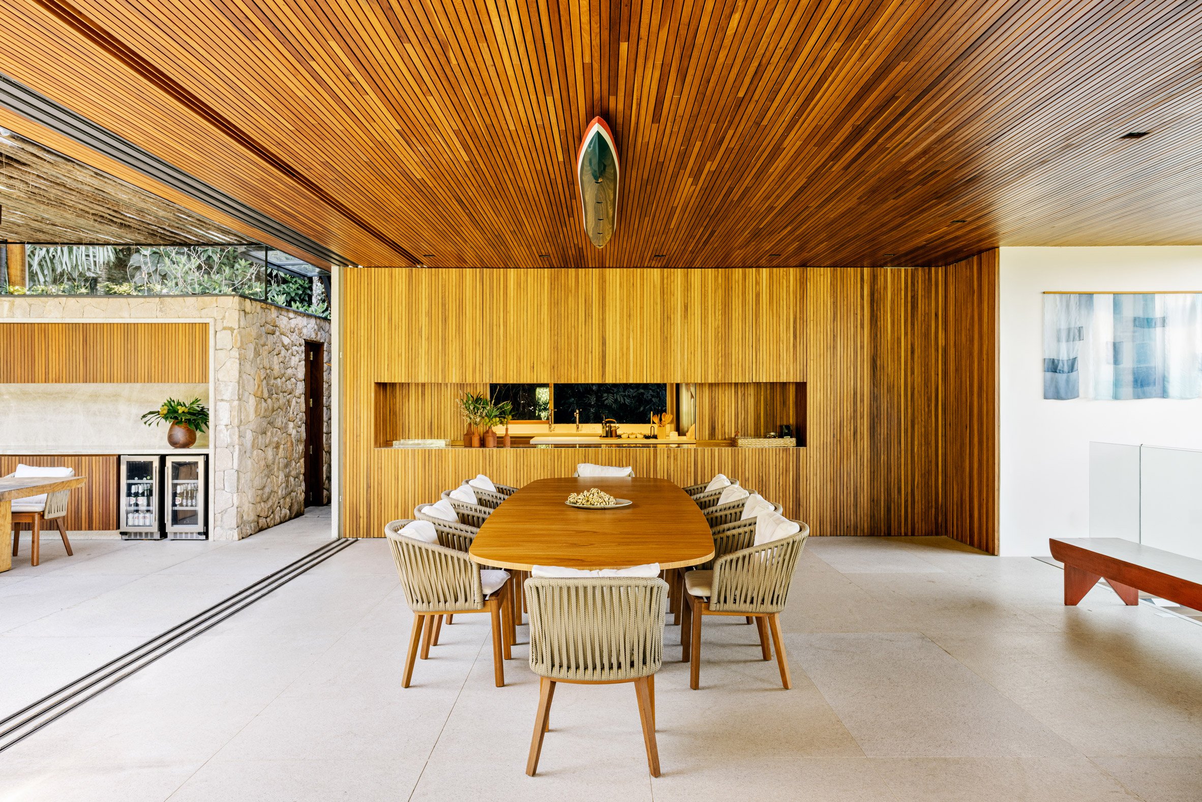 The home was completed in 2023 by the Brazilian team of DB Arquitectos, which is lead by architect David Basto, and Marina Salles Arquitectura e Interiores, which previously renovated the interior of the client's primary residence in downtown São Paulo.
